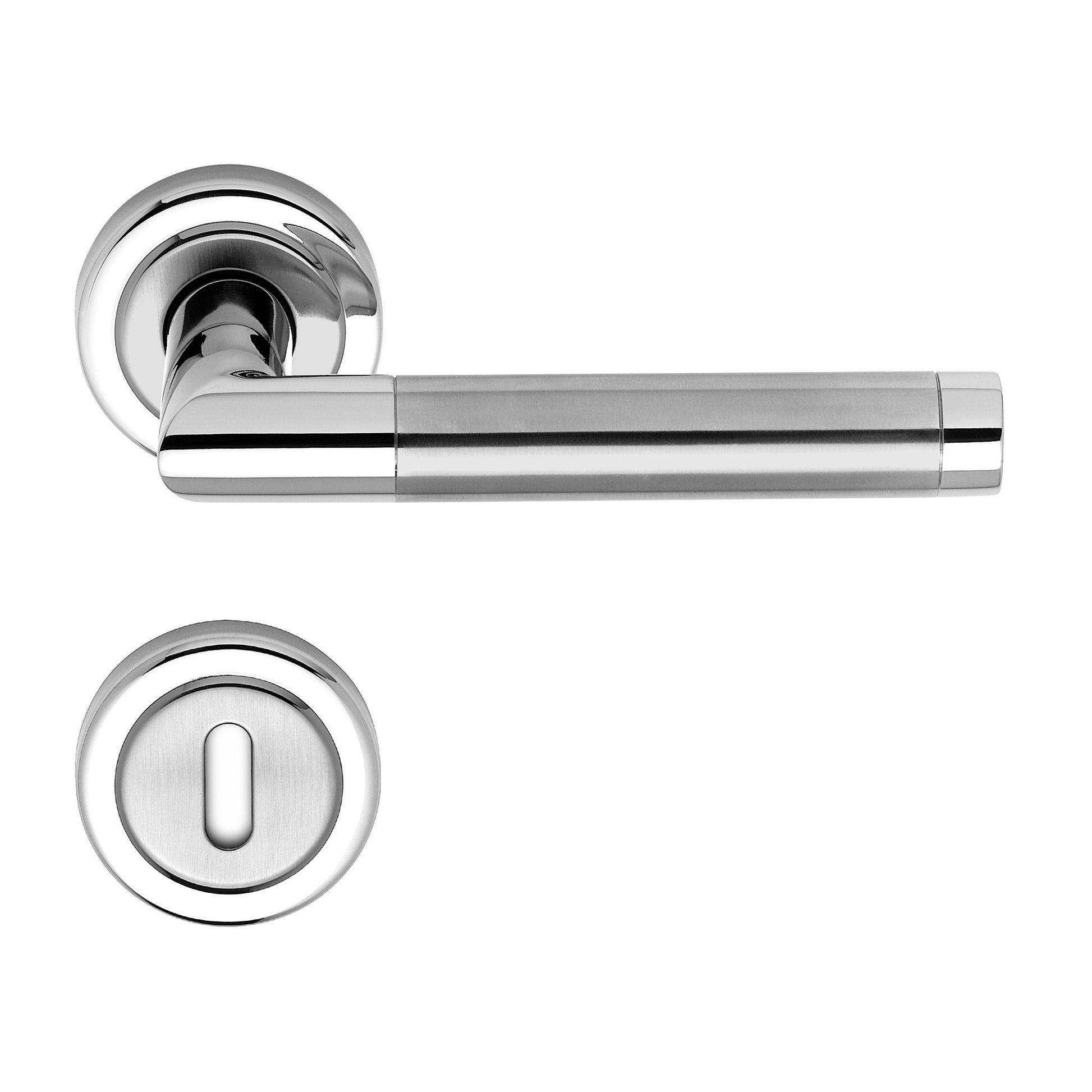 Diese Rosettengarnitur ist robust, langlebig und beständig gegenüber Abnutzung und Korrosion. Die matt gebürstete Edelstahloberfläche verleiht der Garnitur ein elegantes und zugleich pflegeleichtes Aussehen. Sie eignet sich hervorragend für sowohl moderne als auch klassische Innenräume und bietet eine stilvolle Ergänzung zu jeder Tür.