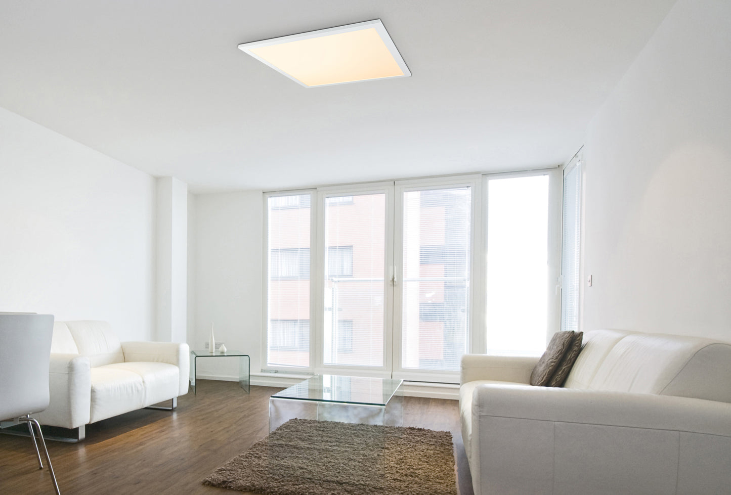 Diese LED-Deckenleuchte aus der Produktionsreihe Rosi, besitzt eine sehr schlichte und dennoch moderne Optik. Die Lampe ist in Form eines Panels gehalten und ist ein praktischer Allrounder, denn durch ihr schlichtes Design lässt sie sich in viele Einrichtungsstile integrieren. Die Deckenlampe ist aus weißen Aluminium und besitzt in der Mitte eine Acryl-Abdeckung, dadurch wird das Licht gleichmäßig im Raum verteilt. Die Leuchte verfügt über ein inkludiertes 40 Watt LED-Leuchtmittel, dieses leistet 3200 Lumen starkes Licht. Bei einer Farbtemperatur gibt die Leuchte ein gemütlich warmweißes Licht von 3000K wieder. Mit einer Länge und Breite von 60x60cm ist die Lampe, ein etwas größeres Modell dieser Serie.
