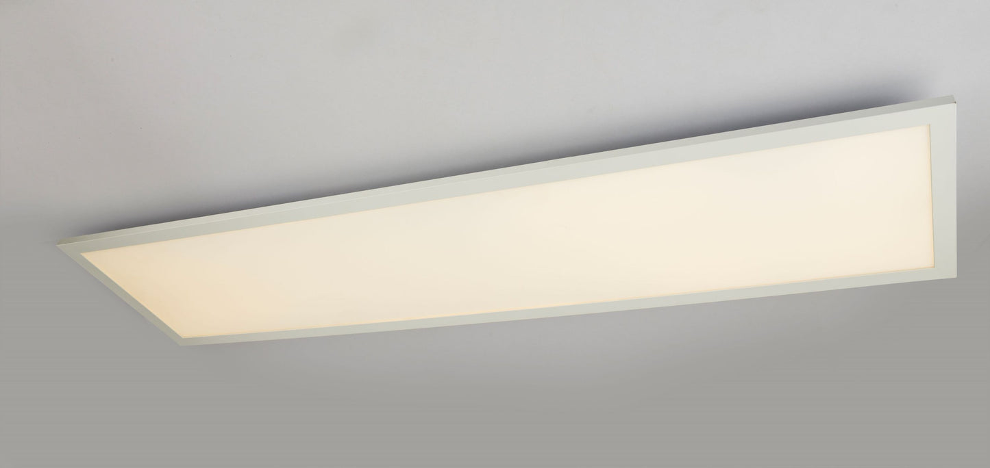 Modern, funktionell und leistungsstark. Das sind die Leistungsmerkmale dieser rechteckigen, flachen Deckenleuchte (120 x 30cm). Hergestellt aus weißem Aluminium und opalen Acryl, leistet das inkludierte LED starke 3200 Lumen mit einer angenehmen 3000K warmweißen Lichtfarbe. Die Besonderheit dieser Deckenlampe ist, dass sie sowohl für den Aufbau als auch für den Einbau geeignet ist. Küche, Wohnraum oder Büro, diese Deckenlampe passt überall hin.