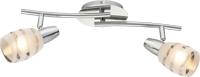Der verchromte Deckenstrahler Roy punktet durch Design und Verarbeitung. Zwei auffällig schöne bewegliche satinierte Gläser sind an zwei festen Armen angebracht und bieten mit ihren E14 Fassungen die Möglichkeit unterschiedliche Leuchtmittel (max. 40W) einzusetzen. Aufgrund ihrer Stromersparnis und Langlebigkeit empfehlen wir LED-Lampen.