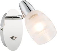 Der verchromte Wandstrahler aus der Strahlerserie Roy punktet durch sein tolles satiniertes Glas. Diese Wandlampe verfügt über einen On-Off-Schalter und überlässt Ihnen, mit ihrer E14 Fassung, die frei Wahl des Leuchtmittels (max. 40W), um somit über Lichtstärke und Lichtfarbe selber bestimmen zu können.