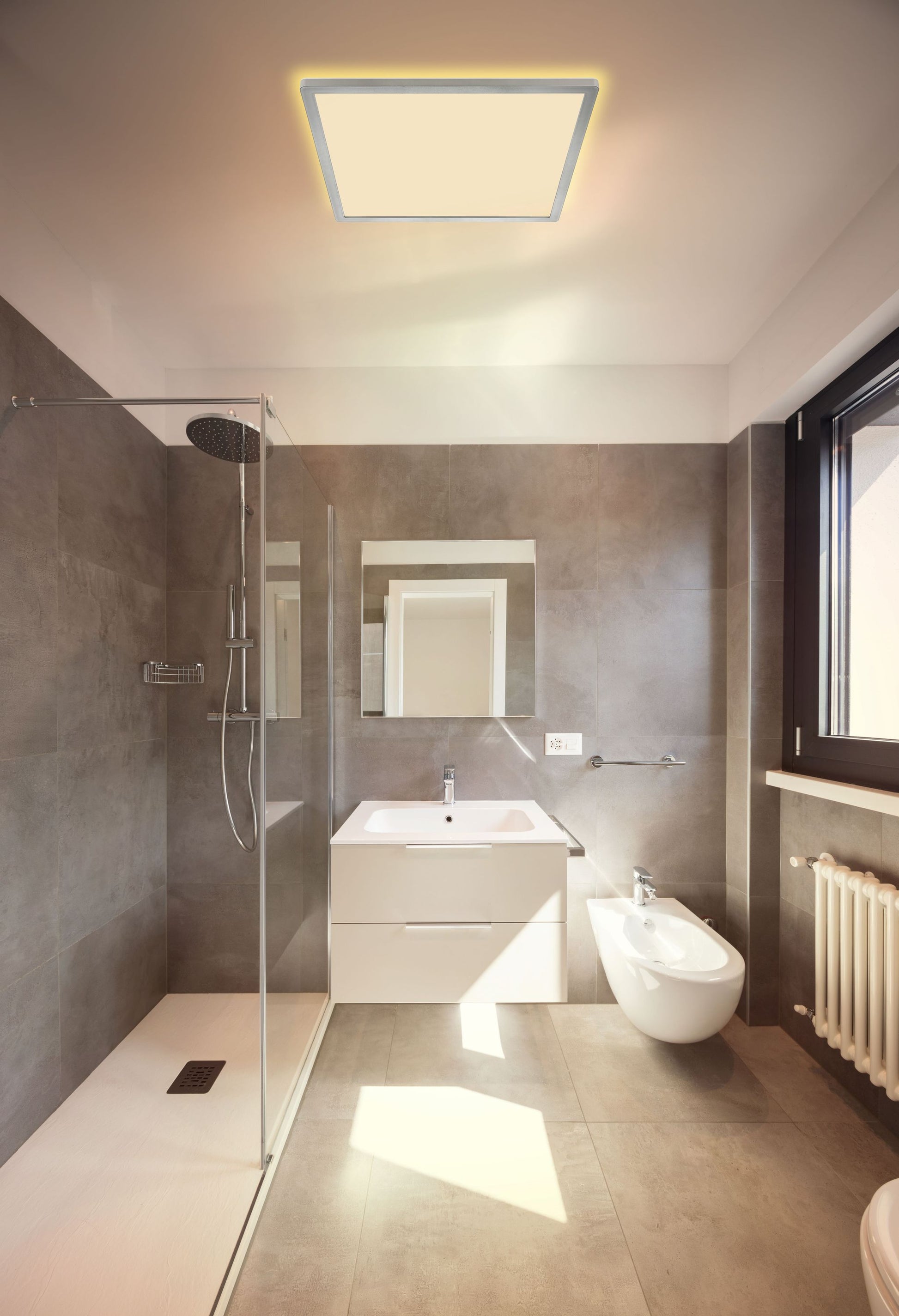 Erleben Sie die elegante SAPANA Deckenleuchte und tauchen Sie Ihren Raum in eine harmonische Atmosphäre. Das matte Nickel-Finish des Kunststoffgehäuses in Kombination mit dem satinierten und opalen Kunststoff erzeugt ein blendfreies und dennoch warmes Licht. Mit der praktischen Funktion über den Wandschalter können Sie die Beleuchtung in verschiedenen Stufen anpassen - von 100% bis 50% und 10% Helligkeit. Die SAPANA verfügt zudem über eine dezente Hintergrundbeleuchtung, die eine zusätzliche Atmosphäre schafft. Dank der intelligenten Memoryfunktion können Sie Ihre bevorzugten Einstellungen speichern. Mit den Maßen von 420x420x25mm fügt sich die SAPANA harmonisch in jeden Raum ein. Die Leuchte ist mit einem leistungsstarken 24W LED-Lichtsystem ausgestattet, das 2700lm Lichtquelle und 2300lm Lichtausbeute erzeugt. Genießen Sie warmes und einladendes Licht mit einer Farbtemperatur von 3000K. Die SAPANA ist zudem IP44-zertifiziert und somit ideal für feuchte Umgebungen wie Badezimmer geeignet. Verleihen Sie Ihrem Raum mit der stilvollen SAPANA Deckenleuchte eine faszinierende Ausstrahlung.