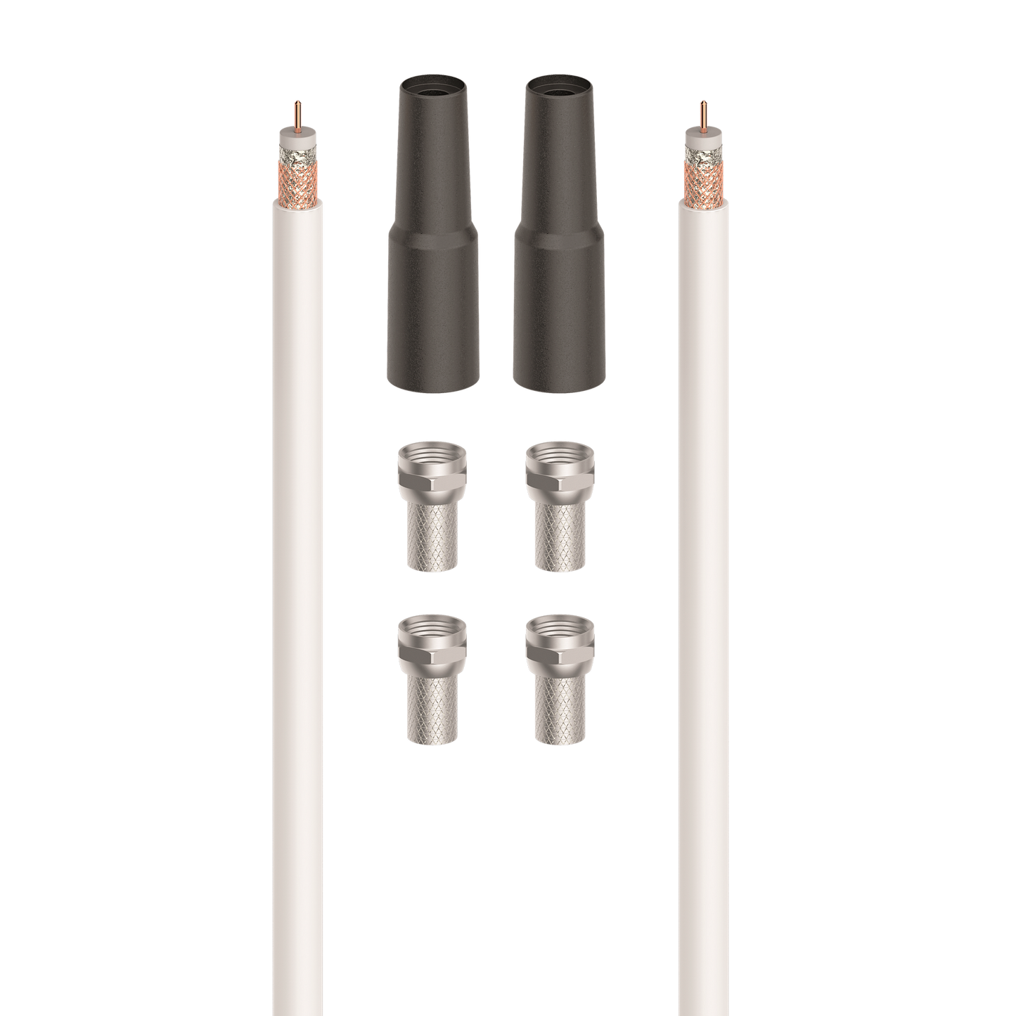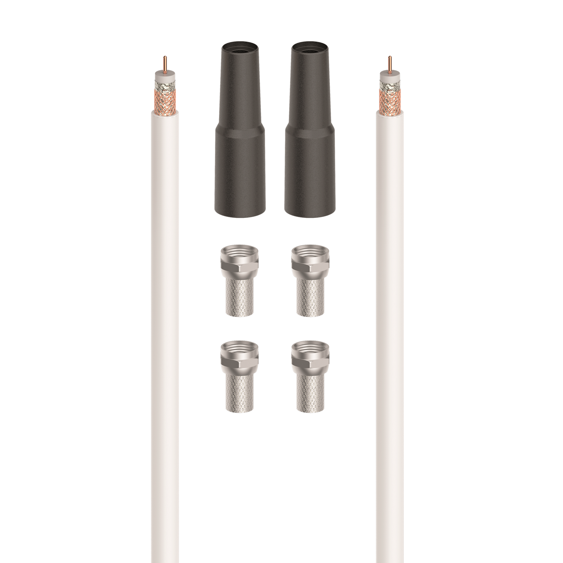 - zum Anschluss von SAT-Schüssel (LNB) an Receiver- vierfache Abschirmung für eine optimale Reduzierung von elektromagnetischen Störeinflüssen- hochwertige Materialien sowie geschirmte Leitungen gewährleisten eine exzellente, störungsfreie Bild- und Tonqualität- Schirmungsmaß von 100 Dezibel (je zwei Lagen extrem dichtes Geflecht + zweilagige Schirmungsfolie) zum Schutz vor elektromagnetischen Störeinflüssen- Impedanz. 75 Ohm- Außendurchmesser: ca. 7,0 mm- HDTV-tauglich- 7-teiliges Set bestehend aus:- 1 Koax-Kabel (Weiß)- 4 F-Stecker- 2 WetterschutztüllenTechnische Eigenschaften:- Produktbereich: HiFi, TV & Heimkino- Produktlinie: Essential Line- Qualität: Essential- Bestandteil: F-Stecker, Koax-Kabel, 4-fach geschirmt, 40m, Wetterschutzhülle- Set-Inhalt in Stück: 7Lieferumfang:- 1 Koax-Kabel- 4 F-Stecker- 2 Wetterschutztüllen - Produktbereich: HiFi, TV & Heimkino- Produktlinie: Essential Line- Qualität: Essential- Bestandteil: F-Stecker, Koax-Kabel, 4-fach geschirmt, 40m, Wetterschutzhülle- Set-Inhalt in Stück: 7