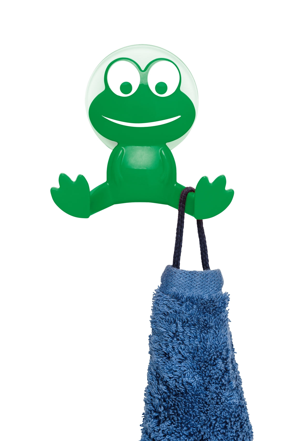 Farbenfroh und natürlich auch noch praktisch - das ist der WENKO Saughaken Frosch in Grün. Mit diesem praktischen Haken finden Handtücher, Waschlappen, etc. im Badezimmer immer einen sicheren und dekorativen Platz auf den beiden Froschbeinen. Durch das ansprechende Design und den soliden Kunststoff können Sie den kleinen, grünen Frosch auch ganz einfach reinigen. An der Rückseite des Wandhakens findet sich ein großer Saugnapf. Dieser muss einfach nur befeuchtet und an gewünschter Stelle angedrückt werden und schon hält der Haken mit einer hohen Haltekraft. Der praktische Saughaken kann auch hervorragend in der Küche platziert werden. Der niedliche Haken ist vielseitig verwendbar und ohne großen Aufwand an einem neuen Platz anzubringen. Ob Bademäntel, Handtücher oder Geschirrtücher, alles hat nun seine Ordnung mit dem cleveren Haken. Auch im Kinderzimmer macht der lustige Wandhaken eine gute Figur. Hier hält der Kleiderhaken die Kleidungsstücke, Taschen, etc. der Kleinen dekorativ griffbereit.