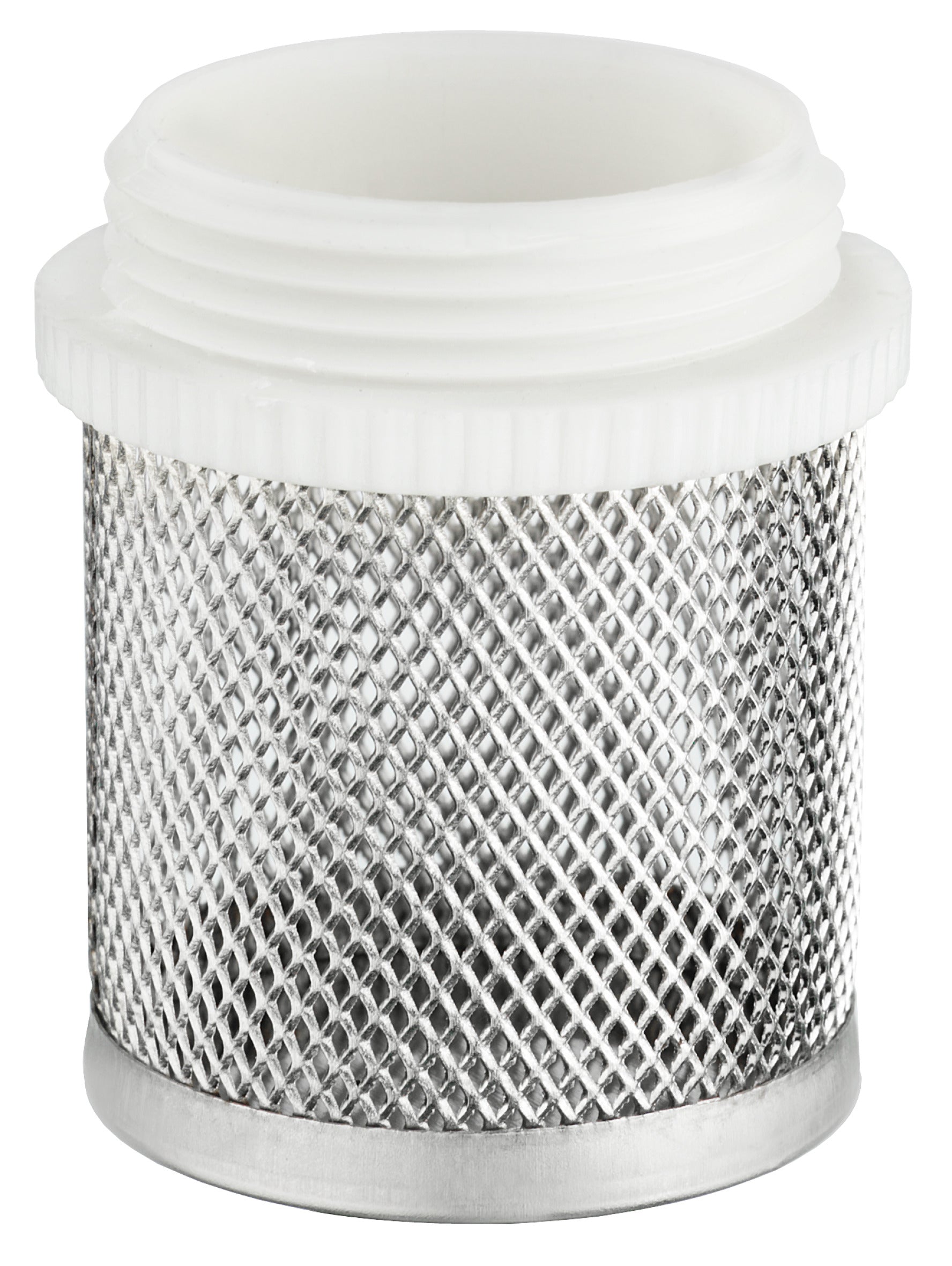 Aus feinmaschigem Edelstahl" AG 1/2" " Mit Kunststoffgewinde. Der Saugkorb ist ein Teil des Zwischenventils, welches den Rückfluss des Fördermediums" Z.B. beim Ausschalten einer Pumpe verhindert