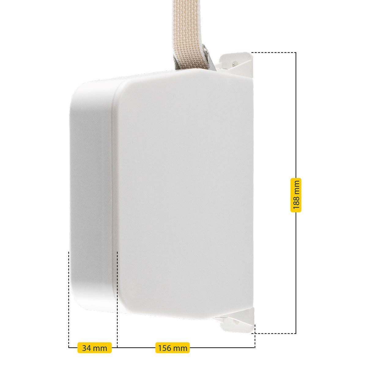 Dieser Aufschraubwickler ist für die Aufputzmontage konzipiert, was bedeutet, dass er einfach sichtbar auf der Wand oder am Fensterrahmen befestigt wird. Bei diesem Modell handelt es sich um eine geschlossene Einheit, in der ein bereits vorgespannter Rolladengurt integriert ist – das spart dir Zeit und Mühe bei der Installation.