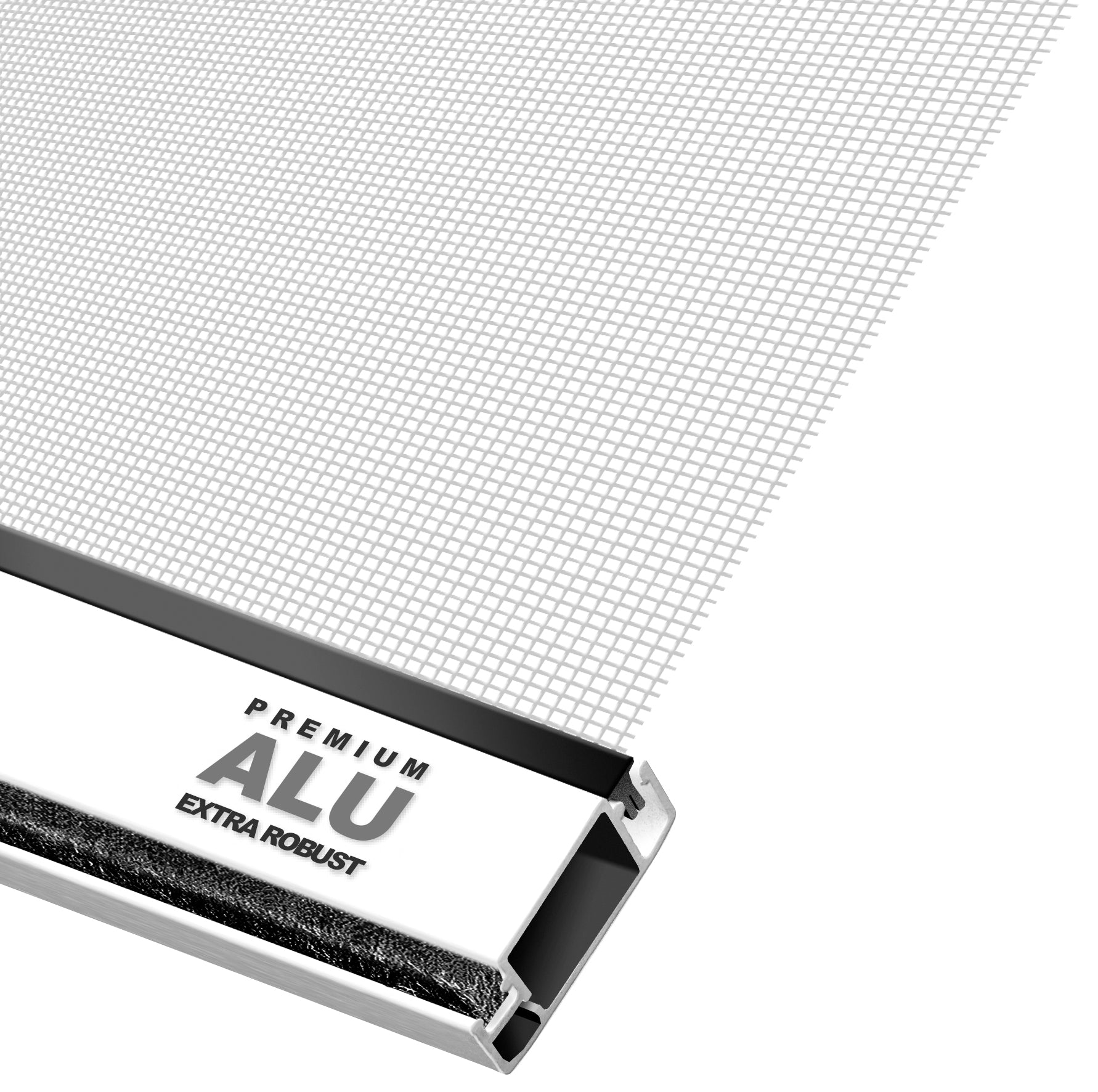 Der stabile Aluminiumrahmen des Insektenschutzfensters PREMIUM überzeugt mit einer Profilstärke von 30 x 11 mm. Diese besondere Stabilität sorgt dafür, dass das Gewebe besser gespannt werden kann und die Profilbiegung reduziert wird – für eine perfekte Optik und Funktion. Zusätzlichen Schutz vor kleineren Kriech- und Krabbeltieren bietet eine umlaufende Bürstendichtung, die fest in den Rahmen eingezogen ist.