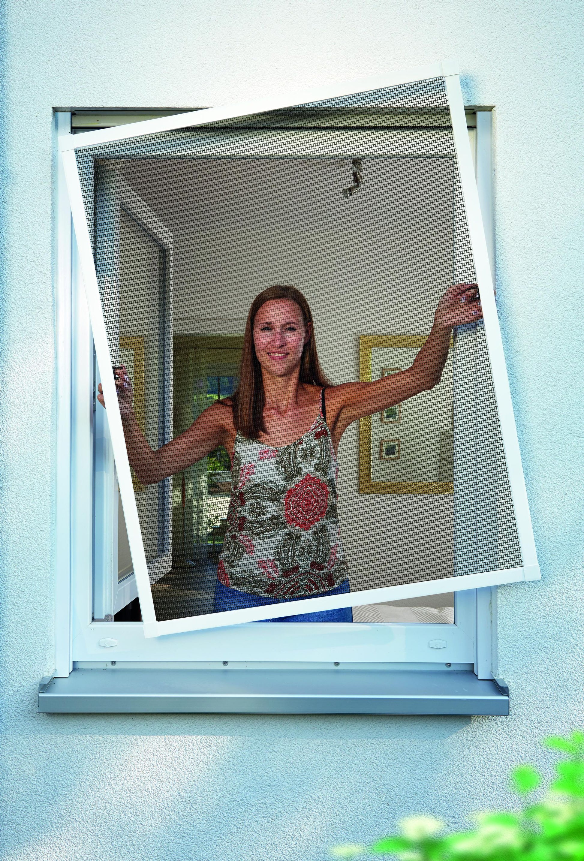 Das Insektenschutzfenster PREMIUM punktet durch seine clevere Montage: Es wird mithilfe von Edelstahlfedern einfach in den Fensterrahmen eingehängt und ist somit nicht dauerhaft befestigt. Das bedeutet für Sie maximale Flexibilität: Sie können den Insektenschutz jederzeit ganz einfach entfernen, wenn er nicht benötigt wird, beispielsweise im Winter. Die Grifflaschen, mit denen das Fliegengitter beim Einhängen festgehalten wird, sind stabil am Rahmen fest verschraubt.