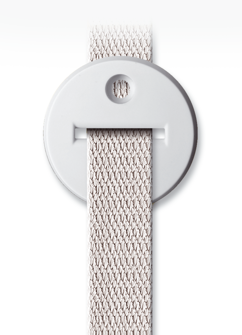 Diese Gurtführung ist vielseitig einsetzbar, denn sie ist sowohl mit dem Rolladensystem Mini (für 14 mm Gurtbreite) als auch mit dem Rolladensystem Maxi (für 23 mm Gurtbreite) kompatibel. Sie hat einen Lochabstand von 25 mm und einen Durchmesser von 42 mm.