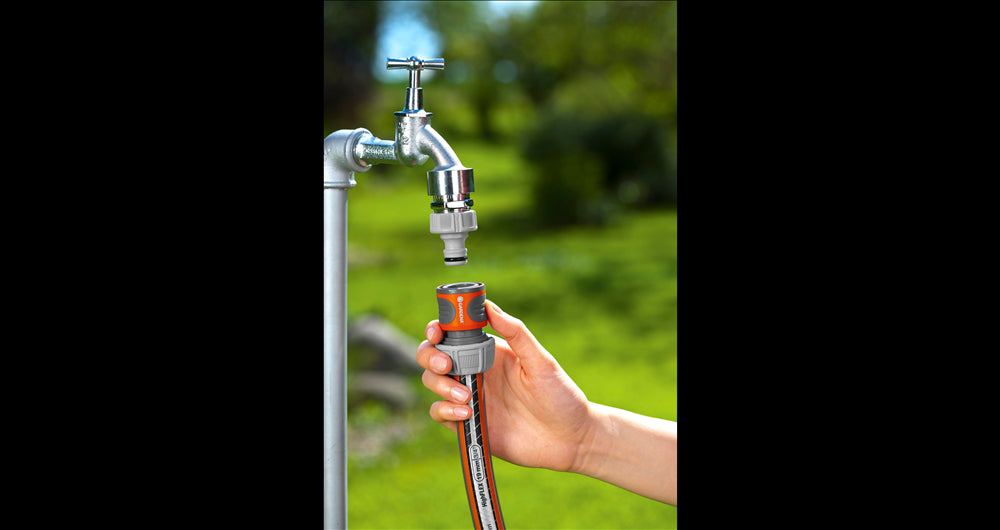Der GARDENA Schlauchverbinder ist eine zuverlässige Lösung, um Gartenschläuche sicher zu verbinden und erleichtert gleichzeitig das An- und Abkoppeln.