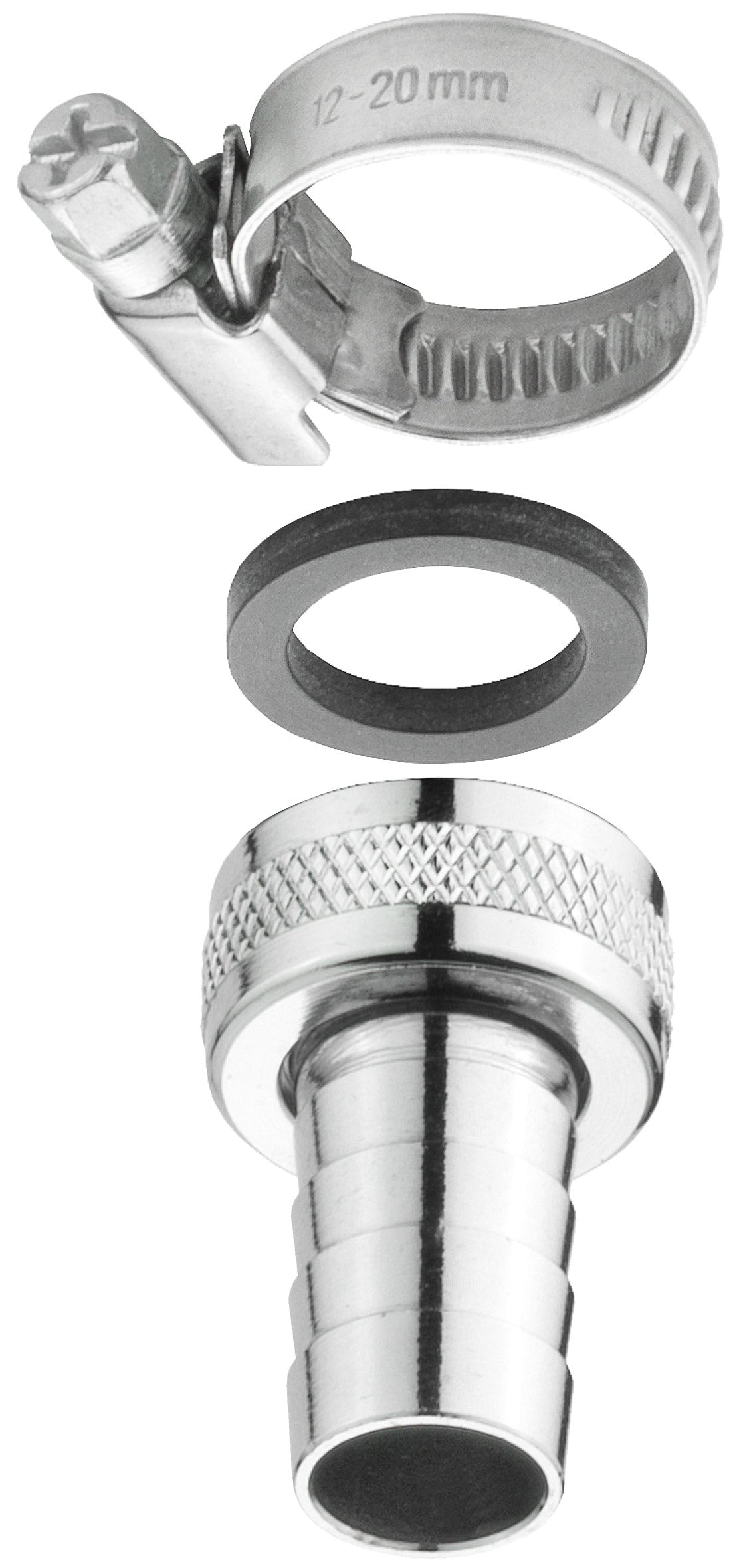 Messing verchromt" 2-teilig" Flachdichtend" Inkl. Schlauchschelle Ø 12 - 20 mm (1/2") x 9 mm" M22 x 1 IG, Tülle 14 mm