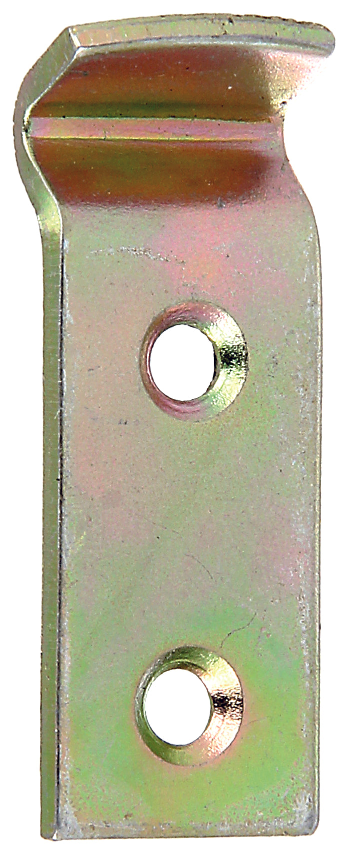 Schließhaken für Kistenverschlüsse, gekröpft, Material: Stahl roh, Oberfläche: galvanisch gelb verzinkt, Breite: 18 mm, Länge: 50 mm, für Bügel-#: 4 mm, Materialstärke: 2,00 mm, Anzahl Löcher: 2, Loch: #4,3 mm