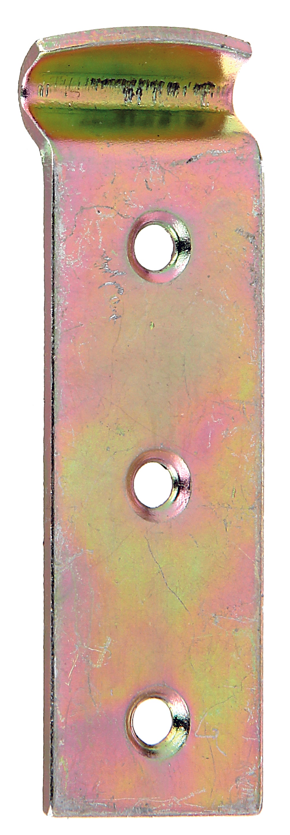 Schließhaken für Kistenverschlüsse, gekröpft, Material: Stahl roh, Oberfläche: galvanisch gelb verzinkt, Breite: 25 mm, Länge: 83 mm, für Bügel-#: 6 mm, Materialstärke: 2,00 mm, Anzahl Löcher: 3, Loch: #4,6 mm