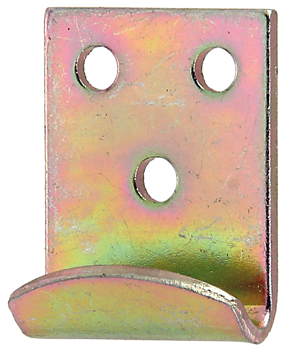 Schließhaken für Kistenverschlüsse, gerade, Material: Stahl roh, Oberfläche: galvanisch gelb verzinkt, Breite: 25 mm, Länge: 34 mm, für Bügel-#: 6 mm, Materialstärke: 2,00 mm, Anzahl Löcher: 3, Loch: #4,5 mm