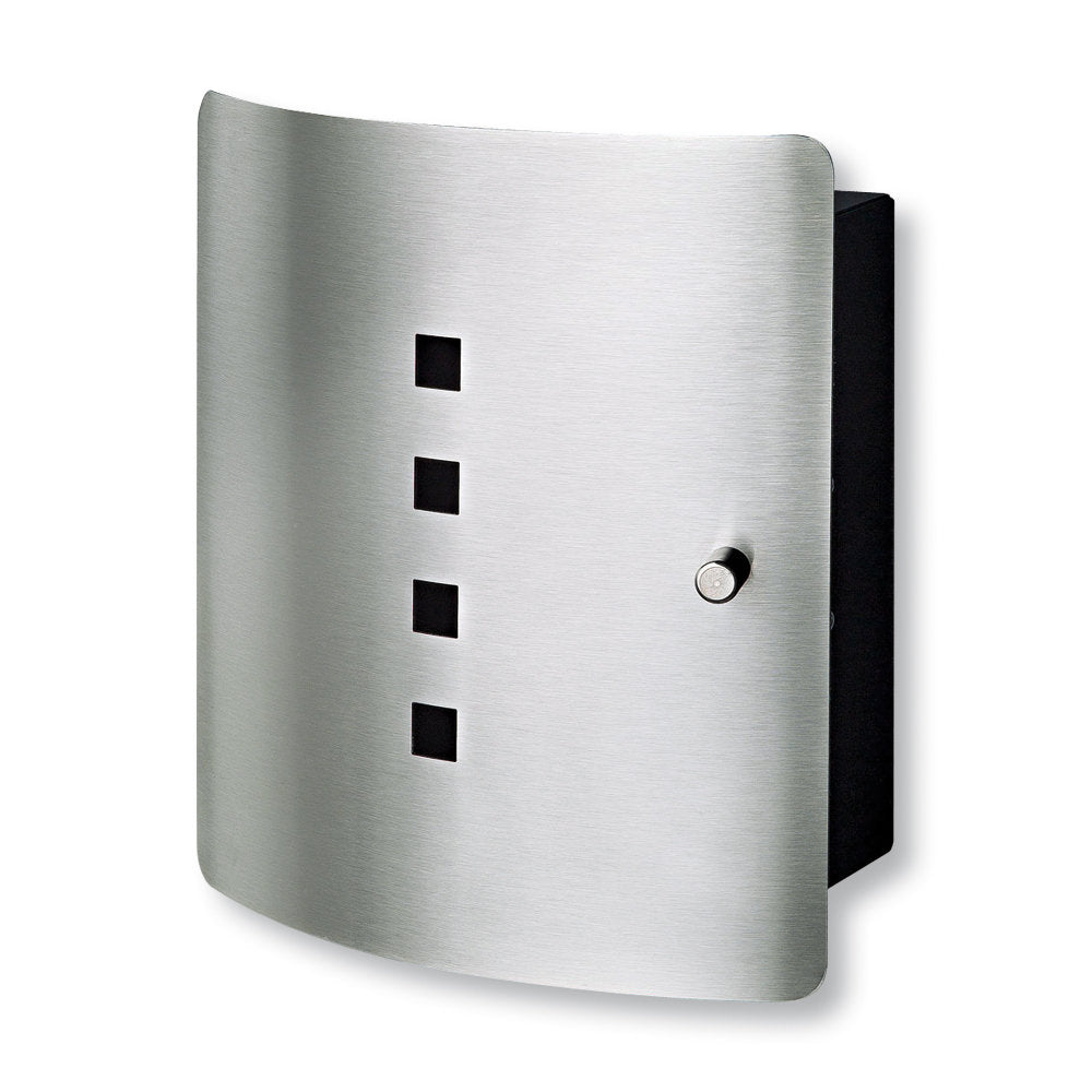 Zeitlos und elegant ist die praktische Schlüsselbox Quad. Die Tür ist aus robusten Edelstahl gefertigt. Für eine moderne Optik sorgen die vier vertikal übereinander ausgerichteten Vierecke in der Mitte der Tür. Somit fügt sich die Schlüsselbox Quad unauffällig und harmonisch in Ihren Eingangsbereich ein.