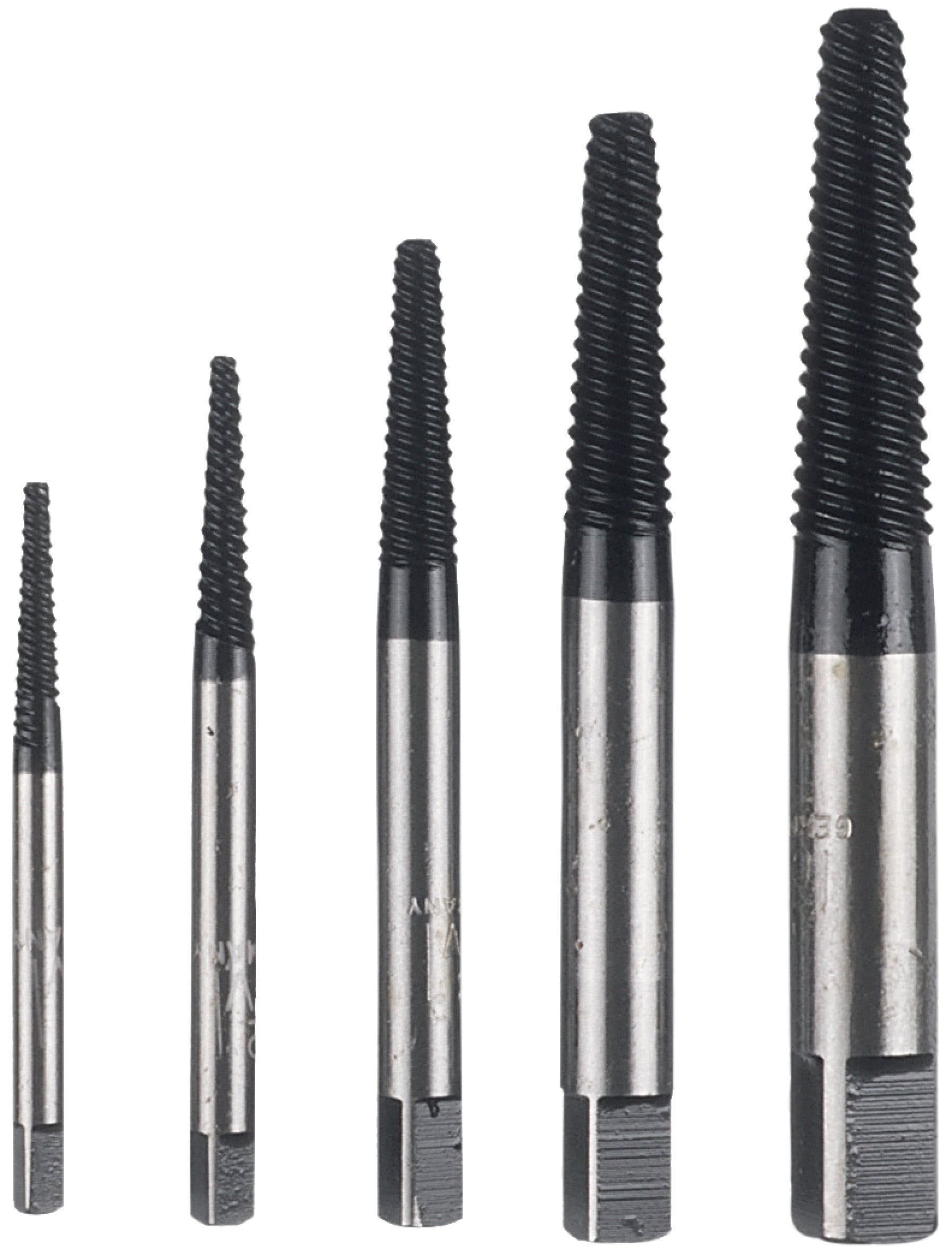 Aus besonders zähem Spezial-Chrom-Vanadium-Stahl" Bestehend aus: Schrauben - Bohrer-ØGr. 1 - M 3 - M 6 -2,5 mm 1/8 1/4Gr. 2 - M 6 - M 8 -3,0 mm 1/4 - 5/16Gr. 3 - M 8 - M 11 -4,5 mm 5/16 - 7/16Gr. 4 - M 11 - M 14 -6,0 mm 7/16 - 9/16Gr. 5 - M 14 - M 18 -8,0 mm 9/16 - 3/4"Nur mit Windeisen oder Schraubenschlüssel verwenden!