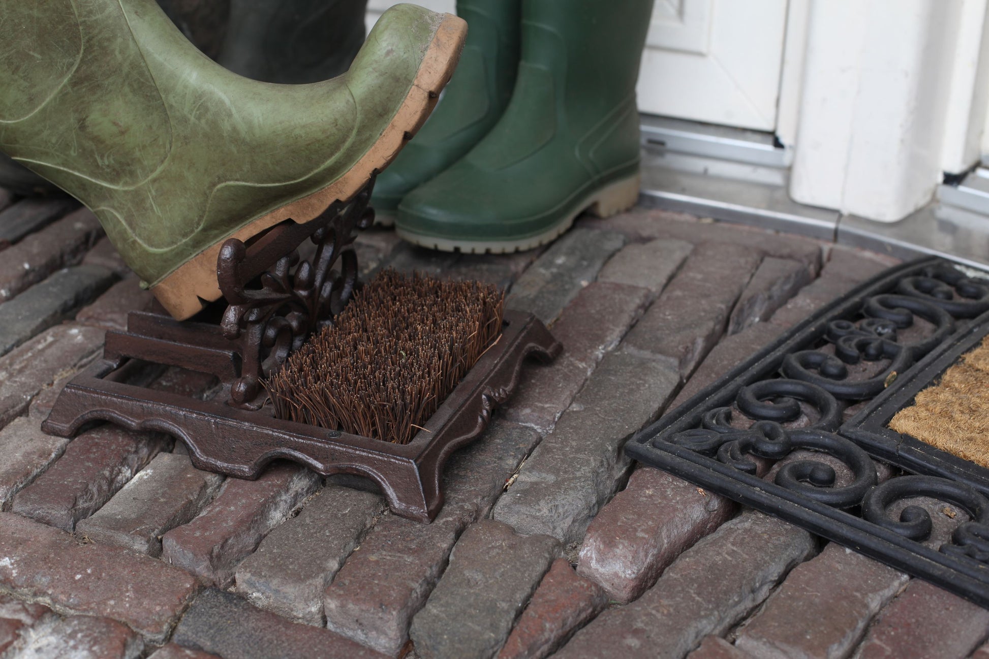 This decorative cast iron boot scraper is ideal for cleaning footwear, there is a scrapper in the middle and to one side while the other side has a choir fibre brush making the removal of dirt easy. This cast iron boot scrapper has been hand cast according to age-old tradition and craftsmanship. Easy to assemble.