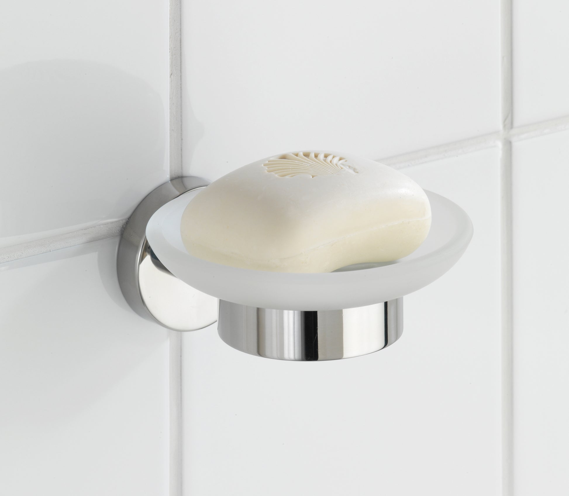 Die hochwertige, runde Seifenablage aus der Bad-Serie Bosio eignet sich ideal zur Aufbewahrung von Handseife. Die schöne Ablage ist mit einer abnehmbaren, satinierten Glasschale ausgestattet. Eventuelle Flüssigkeit wird aufgefangen und die Seife bleibt ansehnlich und griffbereit in der Schale. Die elegante Ablage ist aus rostfreiem, glänzendem Edelstahl gefertigt. Schrauben und Dübel zur Wandbefestigung sind im Lieferumfang enthalten. Alternativ ist auch eine Befestigung ohne bohren möglich. Separat erhältlich ist das Power-Loc Klebe-Set (21578100). Das Power-Loc Kammer-Klebesystem zeichnet sich durch extrem festen Halt auf allen tragfähigen Oberflächen, z.B. Fliesen, Naturstein, Glas, Beton, Metall, Holz und vielen Kunststoffen aus. Das Befestigungssystem hält problemlos auch auf rauen und leicht unebenen Oberflächen.