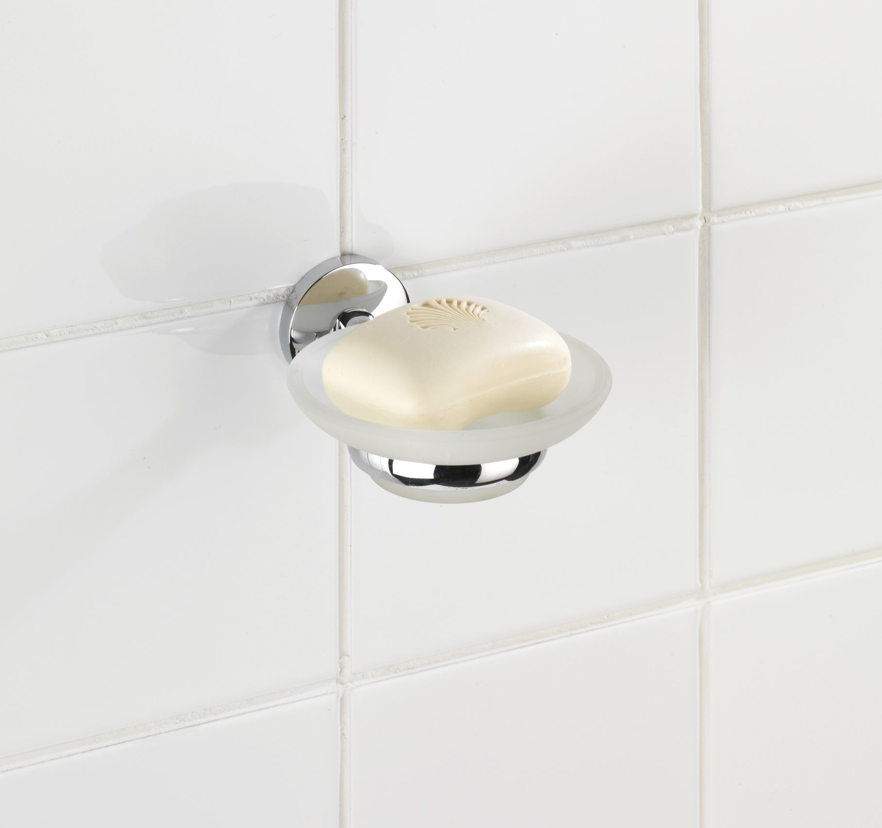 Die stilvolle Bad-Accessoires Serie Cuba vereint Funktionalität und Qualität. Die Serie besteht aus hochwertigem, verchromtem Zinkdruckguss, welches nicht nur edel aussieht, sondern auch 100% rostfrei ist. Die elegante Seifenablage Cuba fügt sich mit ihrem zeitlosen Design dezent in die Einrichtung ein. Die stilvolle, abnehmbare Schale aus satiniertem Glas gibt jeder Seife einen attraktiven Platz, an dem sie stets griffbereit ist. Im Lieferumfang sind Schrauben und Dübel für die Wandmontage enthalten. Alternativ ist auch eine Befestigung ohne bohren möglich. Separat erhältlich ist das Power-Loc Klebe-Set (21578100). Das Power-Loc Kammer-Klebesystem zeichnet sich durch extrem festen Halt auf allen tragfähigen Oberflächen, z.B. Fliesen, Naturstein, Glas, Beton, Metall, Holz und vielen Kunststoffen aus. Das Befestigungssystem hält problemlos auch auf rauen und leicht unebenen Oberflächen.
