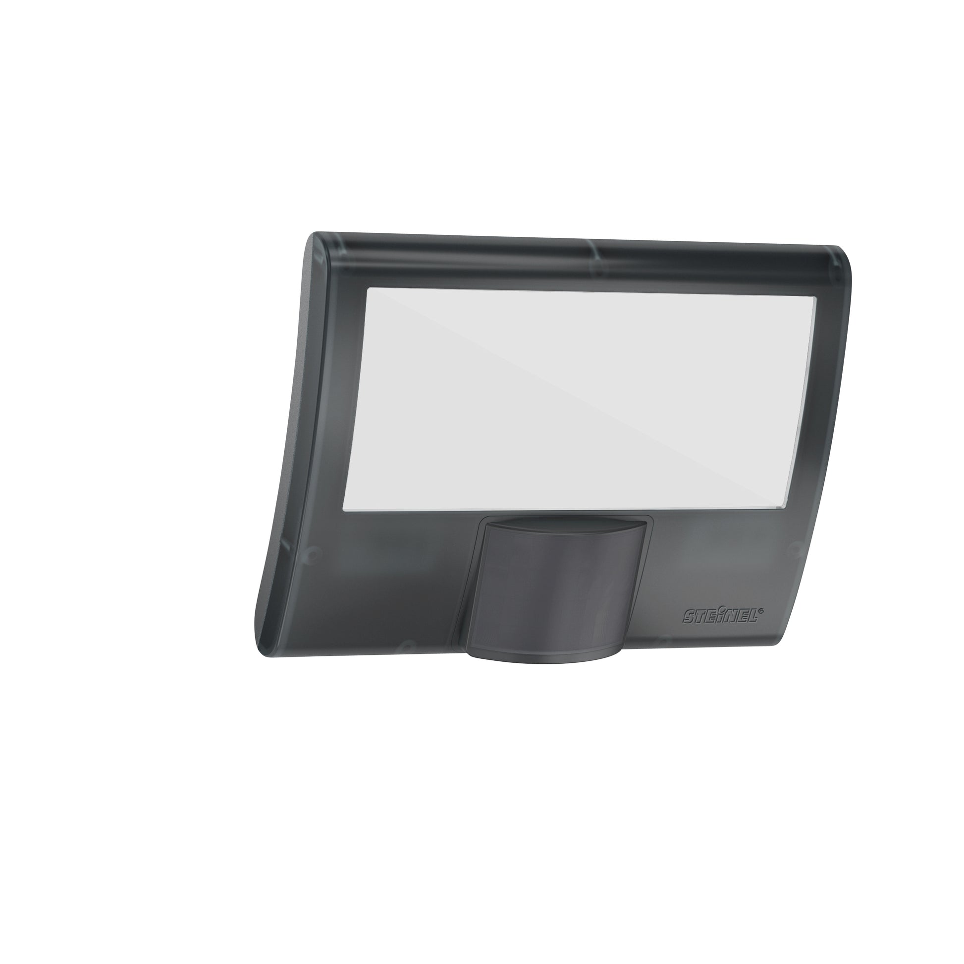 Leuchtendes Kompaktmodell. Sensor-LED-Strahler XLED curved mit 9 W, kompakte und unauffällige Lichtlösung für Hauseingänge, Zugangswege & Co., attraktive Lichtausbeute (1125 lm) bei äußerst niedrigem Energiebedarf, bis zu 8 m Sensorreichweite, horizontaler Schwenkbereich bis +-30°.