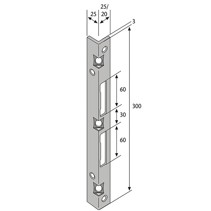 ABUS Schließbleche für Einsteckschlösser sind universell einsetzbar für linke und für rechte Türen, Feste Dreipunktverankerung im Mauerwerk, , SSB400 25x25 SB, Winkelschließblech