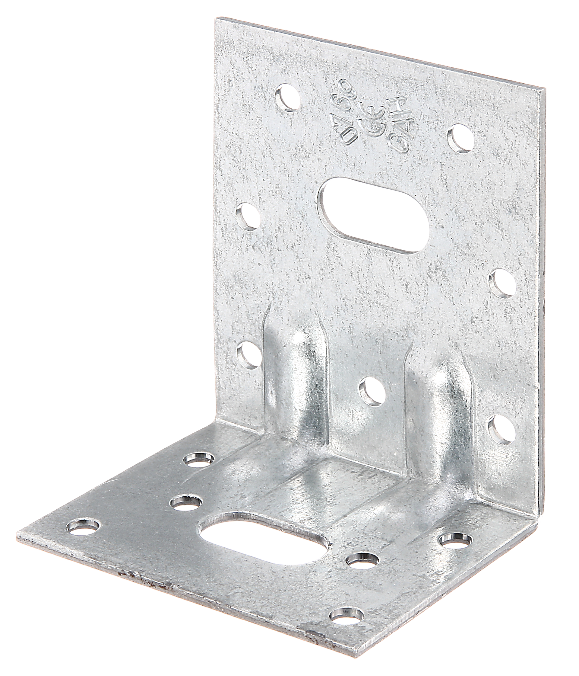 Schwerlast-Winkelverbinder mit zwei Sicken, Material: Stahl roh, Oberfläche: sendzimirverzinkt, mit CE- Kennzeichnung nach ETA- 08/0165, Tiefe: 50 mm, Höhe: 77 mm, Breite: 64 mm, Zulassung: Europ.Techn.Zul. ETA-08/0165, Materialstärke: 2,00 mm, Anzahl Löcher: 2 / 13, Loch: 11 x 22 / #5 mm, CutCase