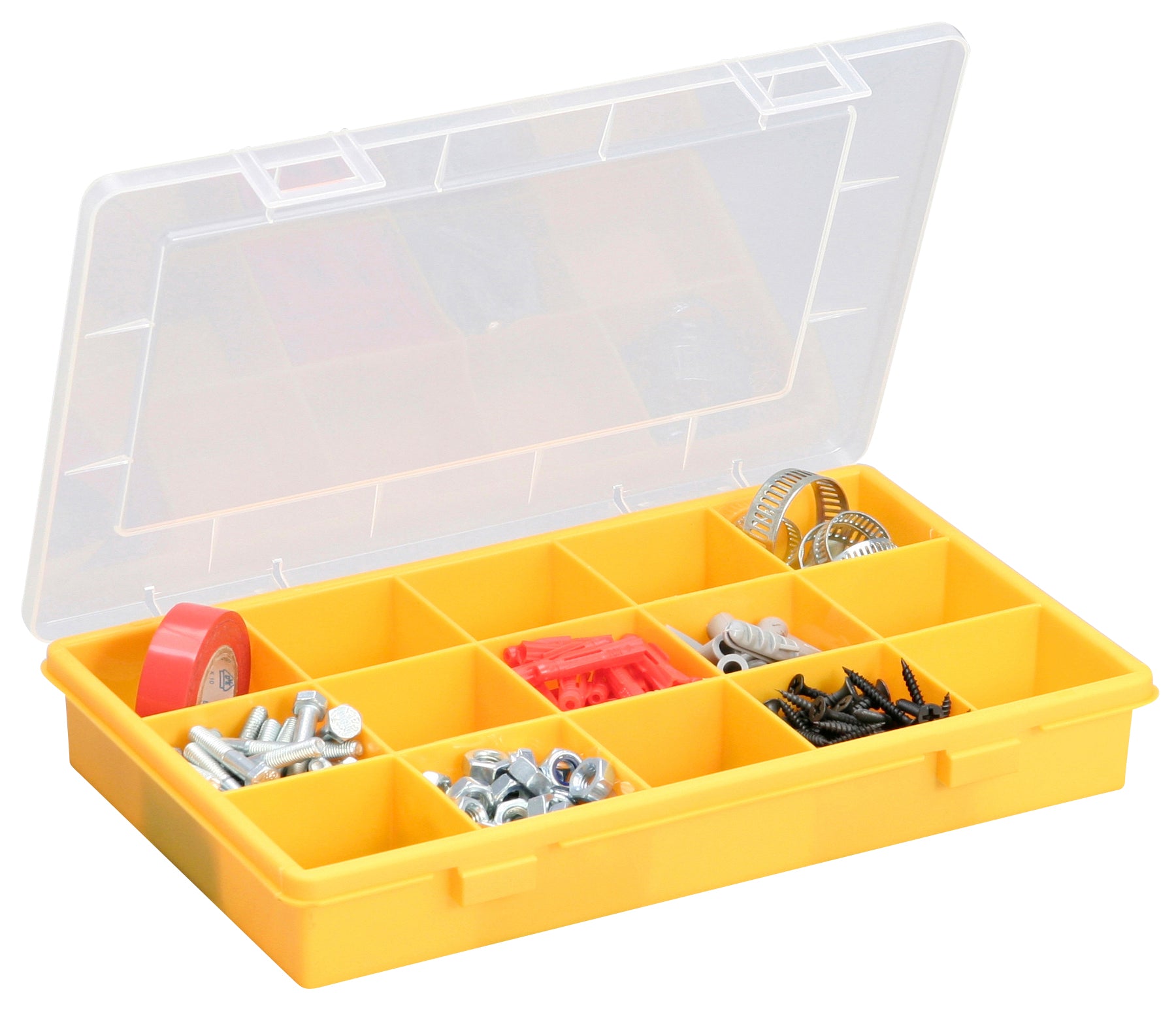 Hochschlagfestes Polypropylen, feste Einteilung.Sichere Sortierung: Fächer schließen fest mit transparentem Deckel ab.Transparenter Deckel, Inhalt immer sichtbar.Ausgestattet mit zwei selbstklebenden Etiketten zur individuellen Beschriftung....
