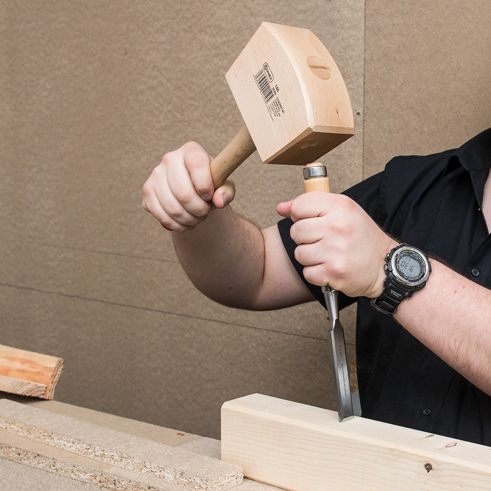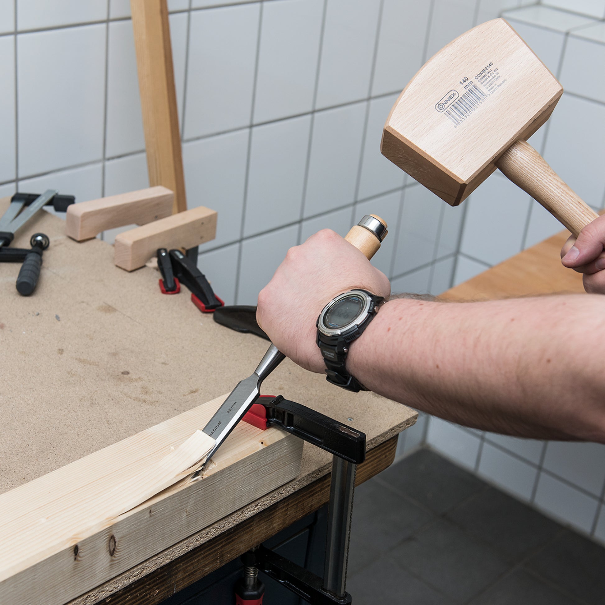 Mit Ulmer Heft aus Hartholz und Stahl-Klinge mit Seitenfase