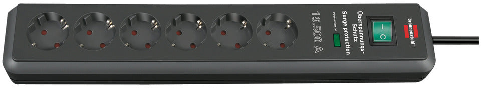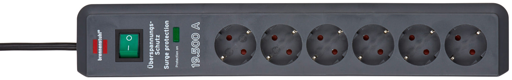 Die Secure-Tec 6er Mehrfach-Steckdosenleiste von Brennenstuhl in der Farbe grau und 2m Kabel besticht durch ihre Qualität und Sicherheit in allen Bereichen. Sie verfügt nicht nur über einen erhöhten Berührungsschutz, sondern überzeugt außerdem durch folgende Eigenschaften: * Schützt wertvolle Geräte vor Überspannungen mit einem max. Ableitstrom bis zu 19.500 A * Funktionskontroll-Leuchte für Überspannungsschutz * Steckdosen mit erhöhtem Berührungsschutz in praktischer 45°-Anordnung * Gesamtleistung max. 16 A/3500 W * Kabellänge 2 m * Kabelbezeichnung H05VV-F 3G1,5 * Nennstrom 16 A * Stecksystem DE