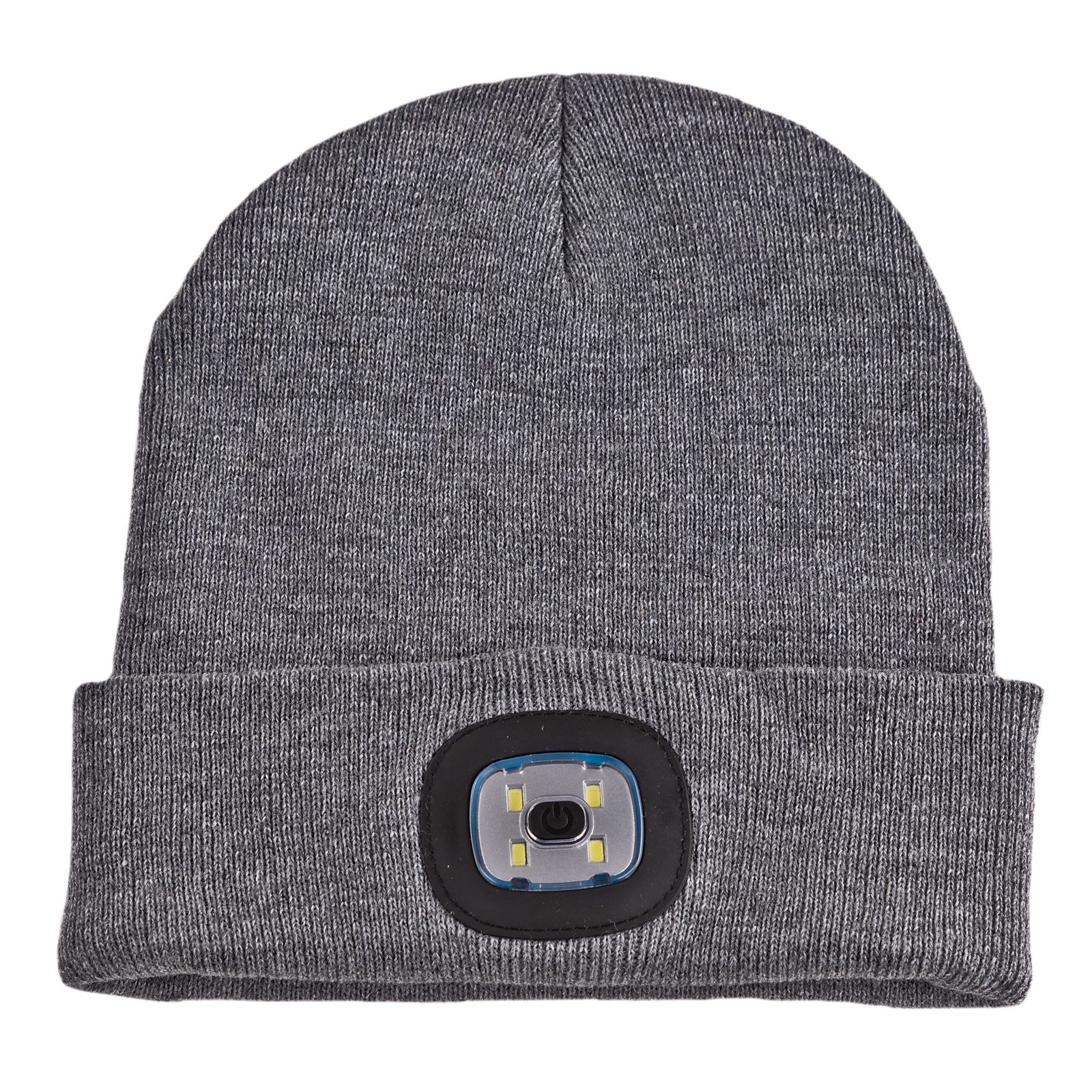 Strickmütze / Mütze grau mit LED Licht, 3-stufige Helligkeitsverstellung
