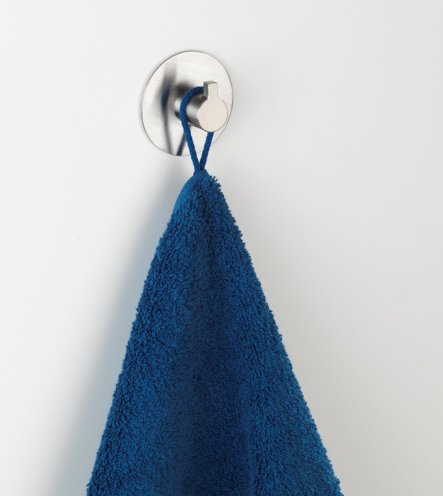 Der moderne Wandhaken Rina von WENKO besticht durch sein stilvolles, silber-mattes Rund-Design und die praktische Handhabung. Der schöne Haken ist aus hochwertigem, rostfreiem Edelstahl kombiniert mit Zinkdruckguss gefertigt und vielseitig verwendbar. Ob Bademäntel, Handtücher oder Geschirrtücher, alles hat nun seine Ordnung! Egal, ob im Badezimmer, Gäste-WC und Schlafzimmer oder in der Küche und Garderobe - im gesamten Haushalt macht der geniale Haken eine gute Figur und hält Kleidung oder Tücher immer griffbereit. Besonders clever: Der Haken wird ganz einfach und ohne bohren an der Wand oder Fliese angeklebt. Das spezielle Strip-it® Klebepad ist dazu bereits am Haken angebracht. Zur Montage wird einfach die Schutzfolie des Klebepads abgezogen und der Haken wird auf dem sauberen, fettfreien Untergrund fest angedrückt. Nach der Anbringung ist er sofort nutzbar und kann außerdem wieder vom Untergrund abgelöst werden, ganz ohne unschöne Bohrlöcher zu hinterlassen.