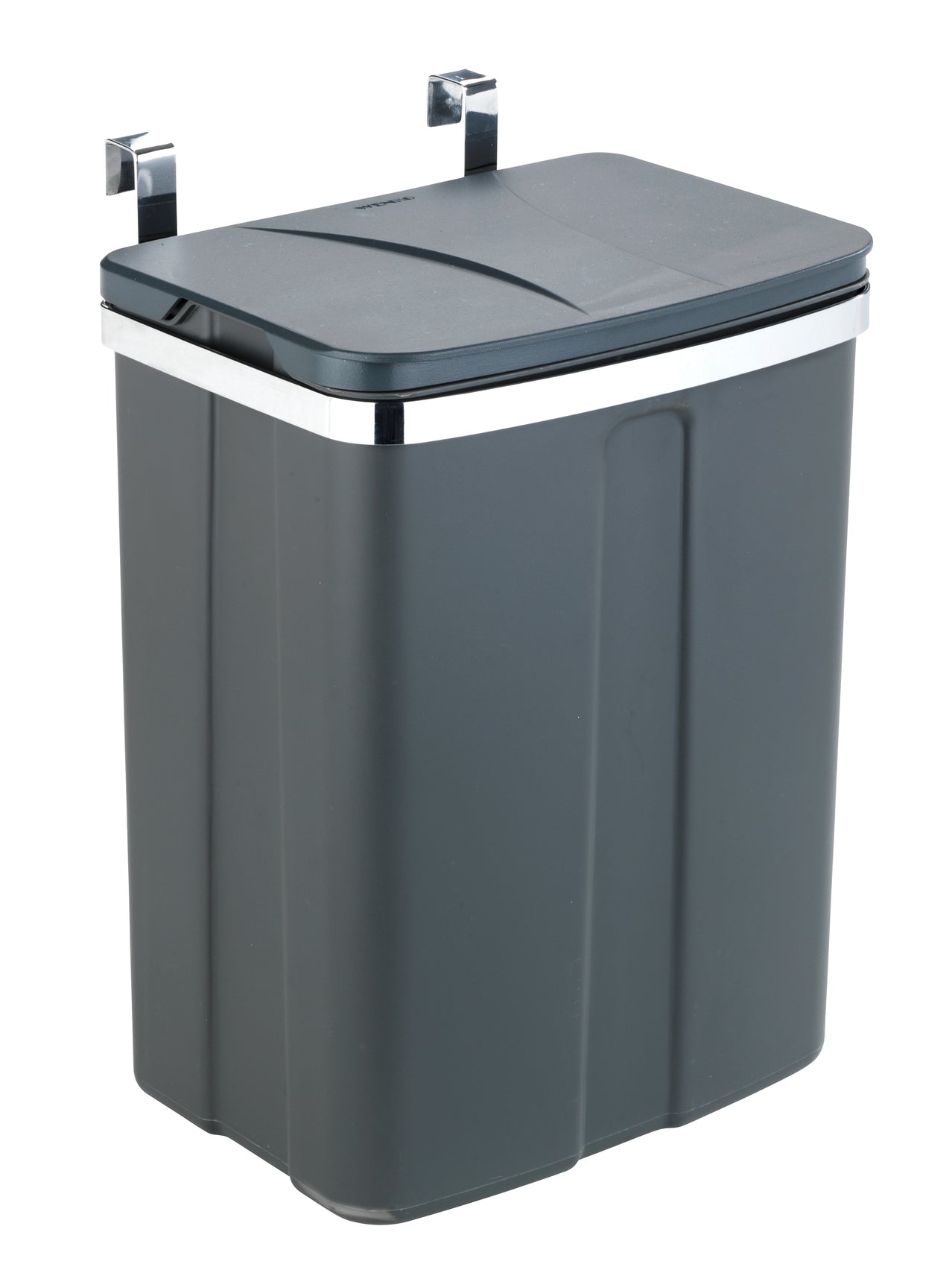 Der kompakte und platzsparende Tür-Abfalleimer von WENKO, ist eine intelligente Lösung für all diejenigen, die ihren Müll gerne unter der Spüle verstauen und gleichzeitig in der Küche Platz sparen möchten. Doch der sensationelle Abfalleimer eignet sich nicht nur für die Entsorgung von Abfällen, denn auch Pfandflaschen können optimal verstaut werden. Zudem verfügt der graue Mülleimer aus hochwertigem Kunststoff über eine große Einwurf-Öffnung, so geht garantiert nichts mehr daneben. Der clevere Deckel schützt vor Gerüchen. Auch die Montage ist kinderleicht, denn der Mülleimer kann mit seinem stabilen Metallrahmen nur an der Schublade oder Schranktür (Falzstärke bis 2 cm) eingehängt werden und ist jederzeit herausnehmbar. Egal ob von innen oder außen. Der Tür-Abfalleimer verfügt über ein Fassungsvermögen von 12 Litern und kann im gesamten Haushalt eingesetzt werden.