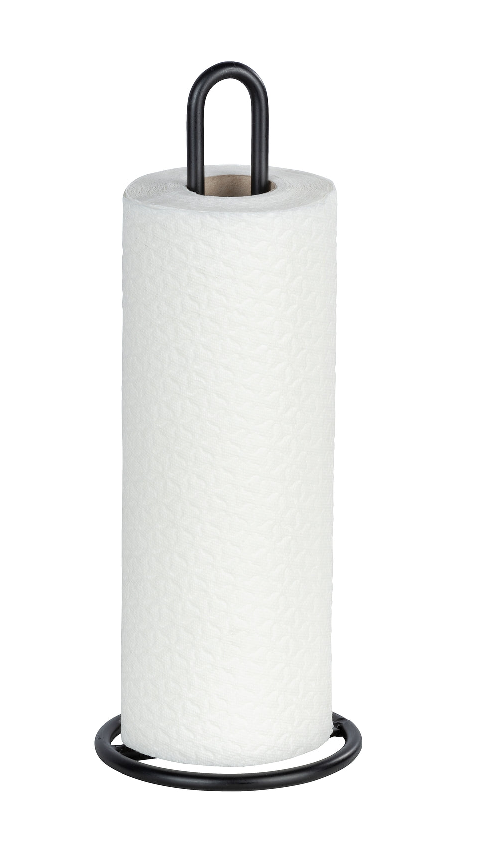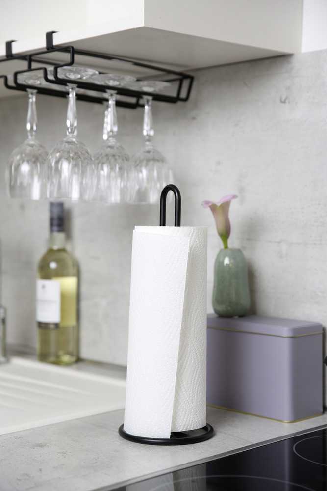 Der praktische Küchenrollerhalter aus angesagtem, schwarzem Metall sollte in keiner Küche fehlen. Mit seinem dezenten, modernen Design bringt er Funktionalität und Stil in jede Küche. Jetzt findet in diesem Halter die Papiertuchrolle einen festen Platz. Dekorativ auf der Arbeitsplatte oder Fensterbank stehend werden die Papiertücher stets griffbereit gehalten und sind leicht ab zu reißen. In den komfortablen Küchenrollenhalter passen alle handelsüblichen Küchentuchrollen.