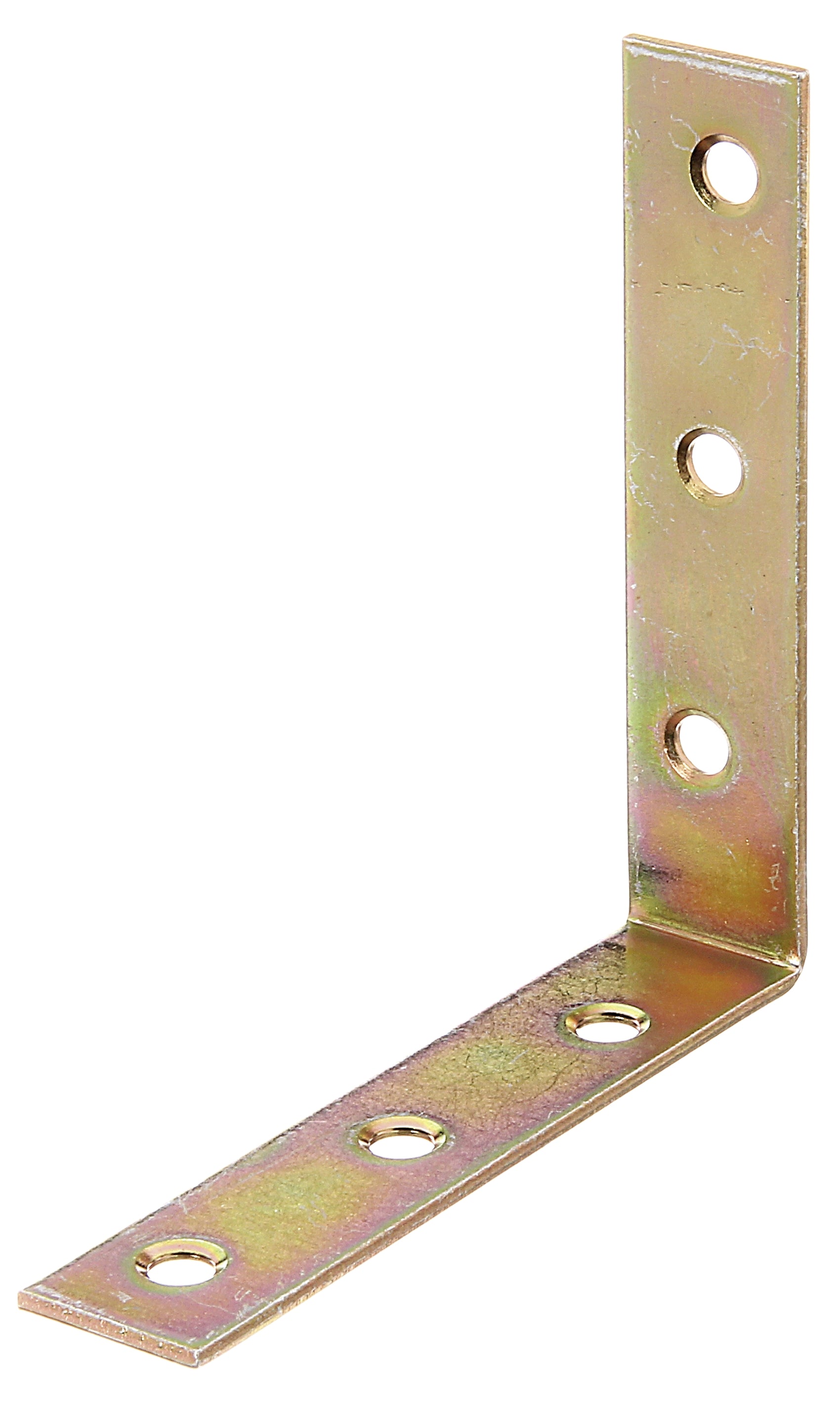 Stuhlwinkel, Material: Stahl roh, Oberfläche: galvanisch gelb verzinkt, Tiefe: 90 mm, Höhe: 90 mm, Breite: 19 mm, Materialstärke: 2,00 mm, Anzahl Löcher: 6, Loch: #5,3 mm