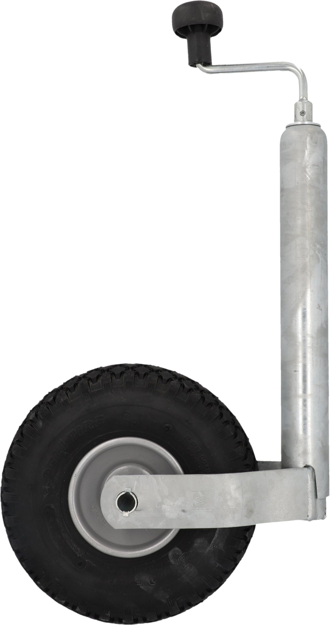 Anhänger Stützrad verzinkt, 48 mm, mit Luftbereifung Geeignet für Wohn- & Transportanhänger Luftreifen mit Stahlfelge und Kurbel zur Höhenverstellung Ø Rohr: 48 mm Ø Reifen: 260 mm Reifenbreite: ca. 85 mm max. Stützlast: 150 kg