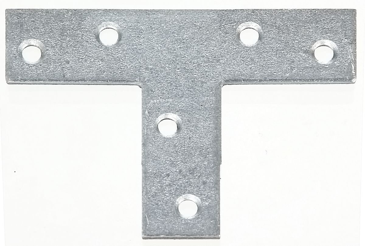 Flachverbinder, T-Form, mit versenkten Schraublöchern, Material: Stahl roh, Oberfläche: sendzimirverzinkt, Länge: 70 mm, Höhe: 50 mm, Breite: 16 mm, Materialstärke: 2,00 mm, Anzahl Löcher: 6, Loch: #3,8 mm, CutCase