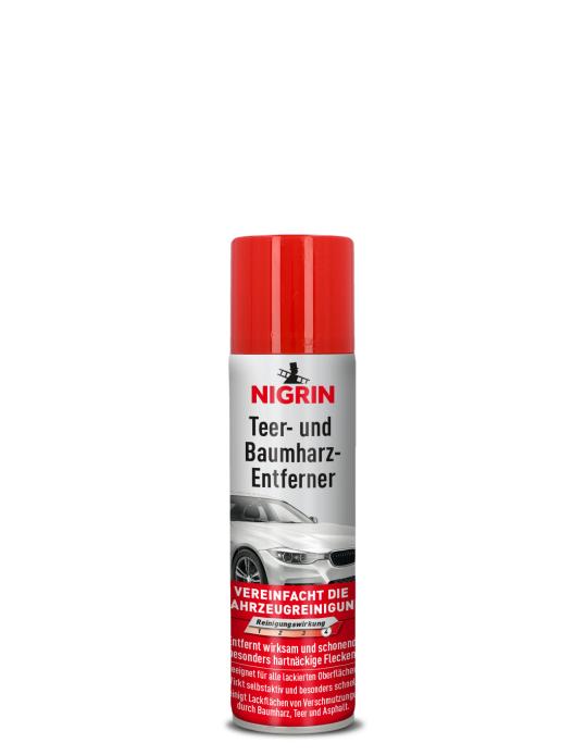 NIGRIN Teer- und Baumharz-Entferner ermöglicht mit seiner selbstaktiven Rezeptur eine besonders effektive und schonende Reinigung des Fahrzeugs. Er ist einfach und mühelos in der Anwendung und reduziert Ihren Arbeitsaufwand. Dabei bietet NIGRIN Teer- und Baumharz-Entferner geprüfte Materialverträglichkeit für Lack- und lackierte Oberflächen sowie Metall und Chrom.