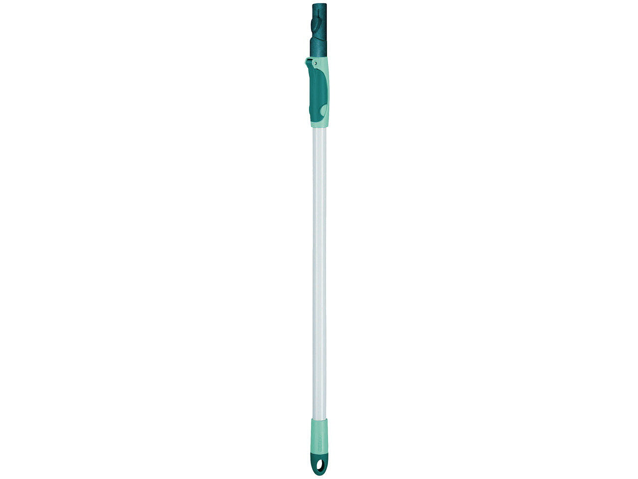 Der Leifheit Teleskopstiel 135 cm kann über das Click-System mit kompatiblen Reinigungsgeräten von Leifheit verbunden werden. Außerdem kann er dank des Anti-Rutschkopfes sicher abgestellt werden und platzsparend an seinem Aufhängeloch verstaut werden