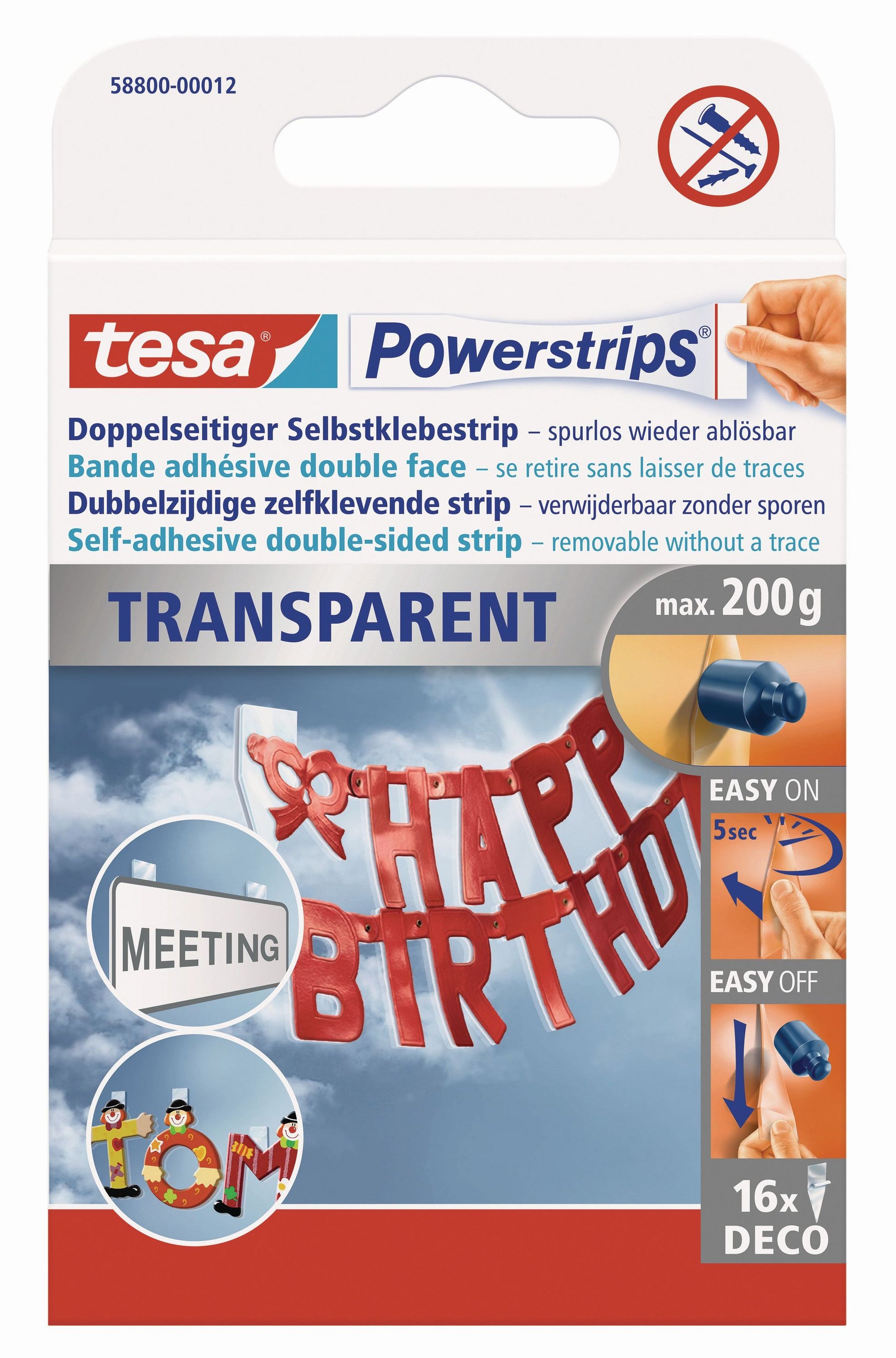 tesa® Powerstrips DECO, transparent, bis 200g, Packung mit 16 Strips
