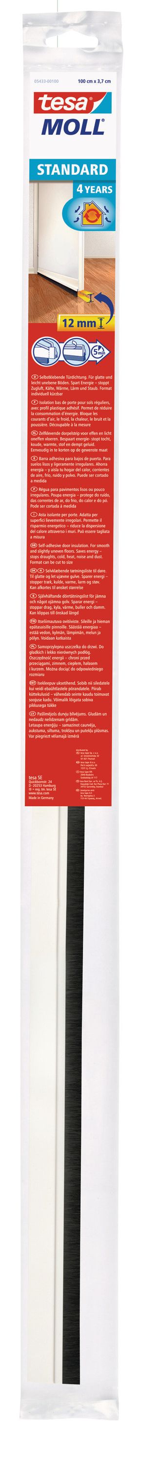 tesa moll Türdichtschiene Standard (Weiß, für Spalten bis 12mm): Ihr effektiver Schutz vor Zugluft auf glatten Böden!