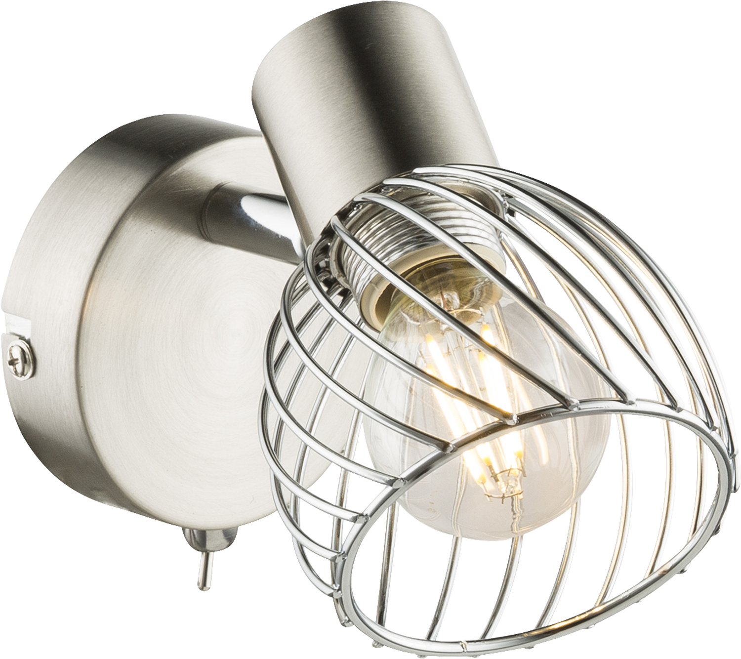 Der Wandstrahler dieser Produktserie überzeugt durch die Kombination aus Design und Verarbeitung. Die Materialkombination aus nickelmatten Metall und Spotschirmen in Metallkäfig-Optik sorgt für das besondere Etwas. Der bewegliche Spot ist mit einer E14 Fassung ausgestattet, die es Ihnen ermöglicht das Leuchtmittel selbst zu bestimmen (max.40W) um damit über Lichtstärke und Lichtfarbe zu entscheiden. Aufgrund ihrer Stromersparnis und Langlebigkeit empfehlen wir LED-Lampen. Des Weiteren bietet Ihnen diese Wandlampe, durch ihren eingebauten Ein/Aus Schalter, eine zusätzliche Möglichkeit der Steuerung. Mit weiteren Deckenstrahlern der gleichen Produktserie können Sie das Bild in Ihren Räumen komplettieren.