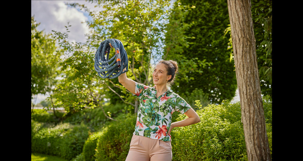 Robust und strapazierfähig: Dank des extrem widerstandsfähigen Textilgewebes ist der Liano™ Xtreme besonders robust und strapazierfähig. Er übersteht mühelos unwegsames Gelände, Pflastersteine, Rosendornen und das Ziehen entlang der Hauswand, ohne zu verknicken oder hängen zu bleiben.
