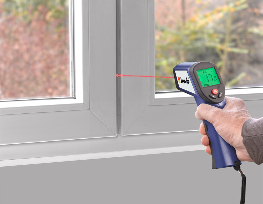 Infrarot-Temperatur-Messgerät, berührungsloses Messen von Oberflächentemperaturen mit Infrarot-Technologie, ideal zum Aufspüren von Wärmebrücken bei der Altbausanierung, Wassertemperatur, Heizungsleitungen, Motorwärme, Laserzielpunkt zum genauen Anvisieren der Messstelle, Messbereich von -20°C bis + 320°C, Messobjektiv 12 : 1, umschaltbare Temperaturanzeige von Celsius in Fahrenheit, automatische Abschaltung nach 10 Sekunden, Laserklasse 2, 635 nm Wellenlänge, Messgenauigkeit 0°C bis 320°C = +/- 1,5°C 0,5 mm/m, -50°C bis 0°C = +/- 3,0°C, mit 9 V DC Blockbatterie