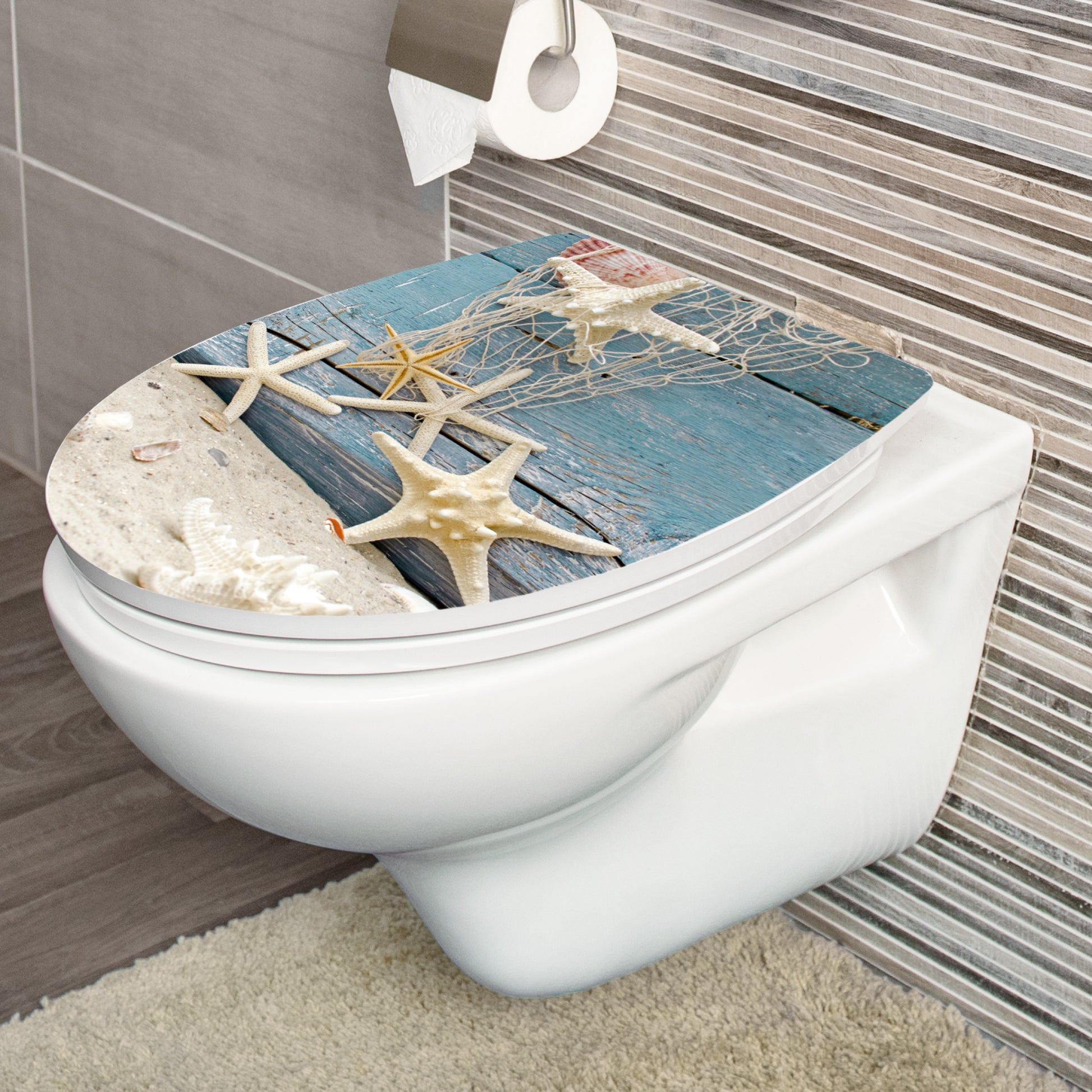 Thermoplast" Absenkautomatik" Kunststoff-Scharniere mit Edelstahl Befestigungsbolzen" Problemlose Befestigung von oben" Quick up and clean - zur Reinigung problemlos abnehmbar, ohne Scharnierdemontage" Gewicht mit Scharnieren: 1,5 kg" Farbe: Dekor