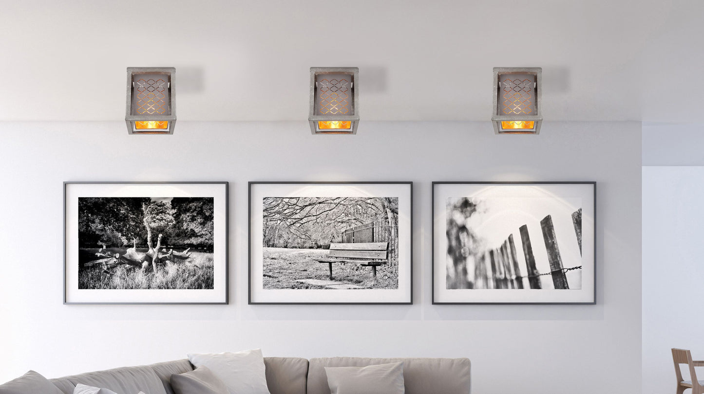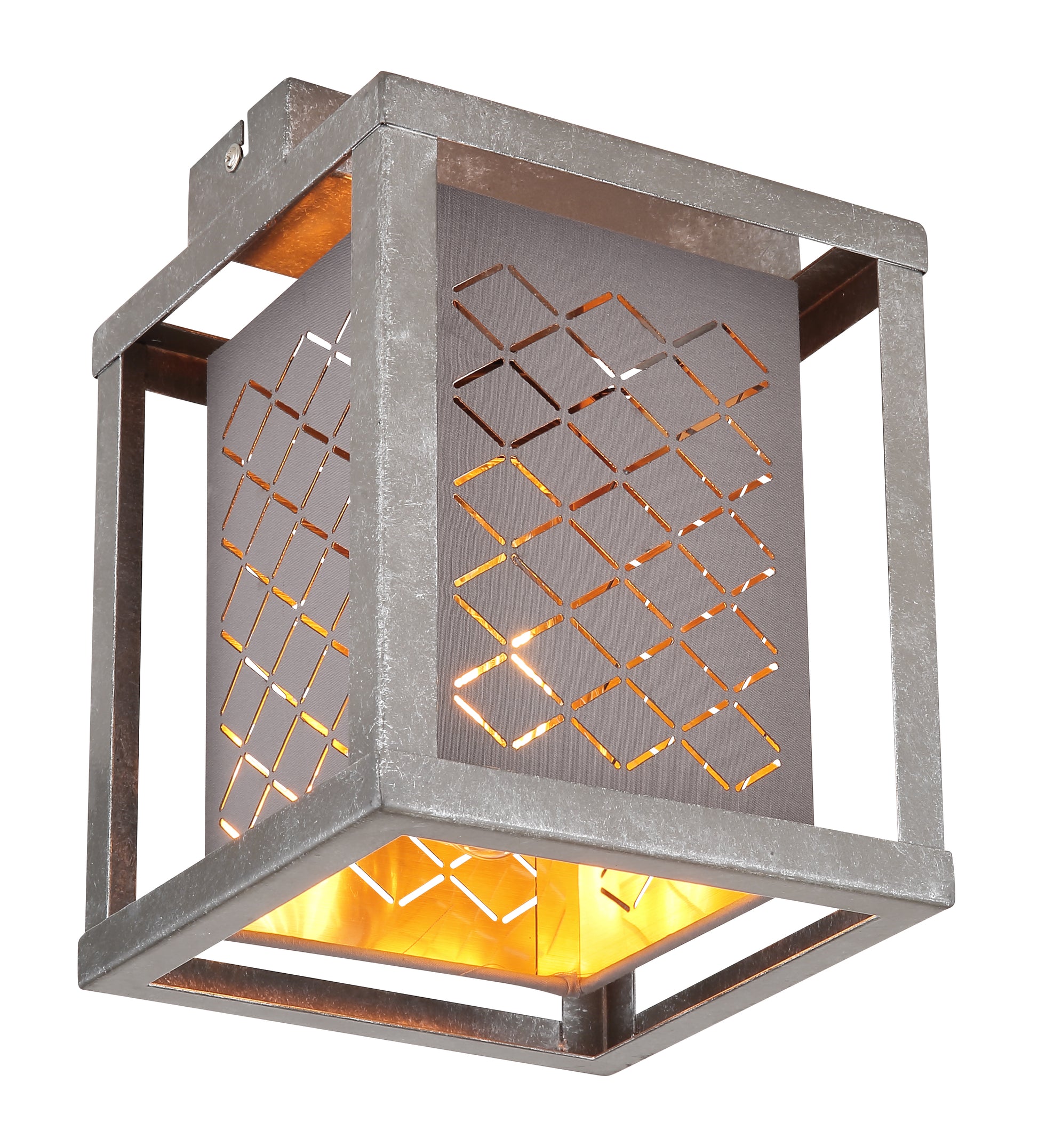 Diese Deckenlampe aus der Thomas-Serie (17x17 cm) ist eine wunderbare Ergänzung für Ihre Innenräume. Die 22,5 cm große Deckenleuchte besteht aus einem silberfarbenen Metallrahmen, der mit einem außen grau und innen golden getönten, quaderförmigen Textilschirm mit linienförmigen Stanzungen versehen ist. Diesen können Sie mit einem E27-Leuchtmittel Ihrer Wahl bestücken, wodurch Sie die Möglichkeit haben, Lichtfarbe und Helligkeit individuell zu bestimmen. Durch weitere Modelle der gleichen Serie können Sie in Ihren vier Wänden für ein stilvolles Ambiente sorgen.