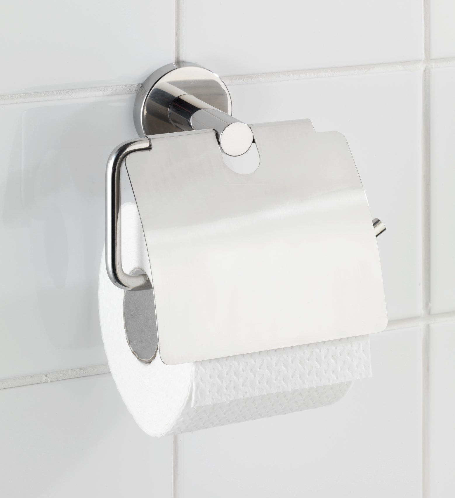 Der hochwertige Toilettenpapierhalter aus der Bad-Accessoire Serie Bosio bringt stilvolle Eleganz in jedes Bad und vereint Funktionalität und Qualität. Er besteht aus rostfreiem Edelstahl mit glänzender Oberfläche. Die Toilettenpapierrolle wird einfach auf den praktischen Toilettenpapierhalter gesteckt und das Papier kann nach Bedarf entnommen werden. Der Deckel gibt dem Halter eine schützende, geschlossene Form. So hält der nützliche Helfer im Bad und Gäste-WC das Papier stets griffbereit. Schrauben und Dübel zur Wandmontage sind im Lieferumfang enthalten. Alternativ ist auch eine Befestigung ohne bohren möglich. Separat erhältlich ist das Power-Loc Klebe-Set (21578100). Das Power-Loc Kammer-Klebesystem zeichnet sich durch extrem festen Halt auf allen tragfähigen Oberflächen, z.B. Fliesen, Naturstein, Glas, Beton, Metall, Holz und vielen Kunststoffen aus. Das Befestigungssystem hält problemlos auch auf rauen und leicht unebenen Oberflächen.