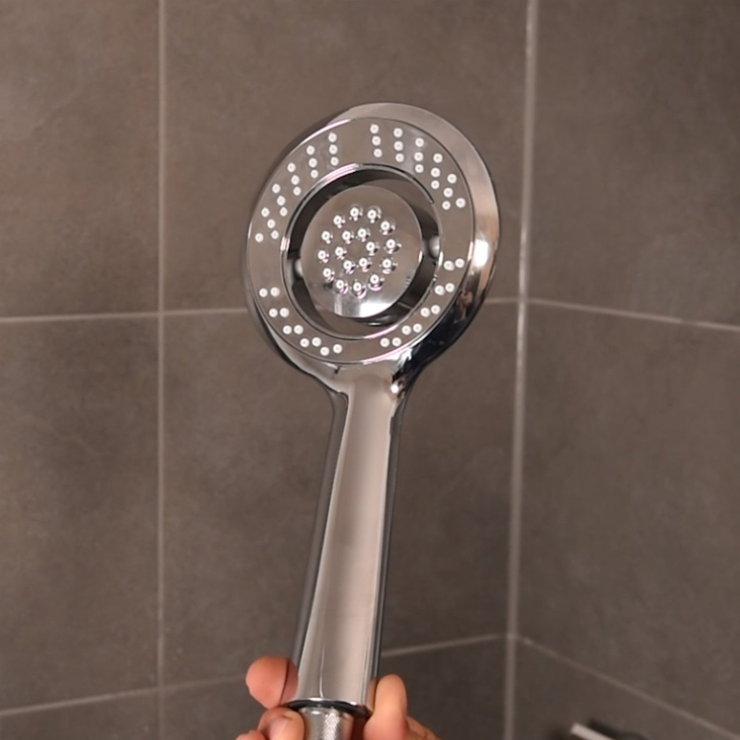 3 Strahlarten: Normalstrahl, Massagestrahl, Sprühstrahl" Mit Wasserstopp-Funktion" Umstellung über die Sprayplatte" Kopfdurchmesser: 130 mm" Mit Antikalk-Funktion" ½ Anschlussgewinde" Für Durchlauferhitzer geeignet" Mit Wasserspareinsatz und separater Dichtung" Farbe: verchromtDurchflussmenge:Mit Wasserspareinsatz bei 3 bar: 5,70 l/minOhne Wasserspareinsatz bei 3 bar: 8,00 l/min