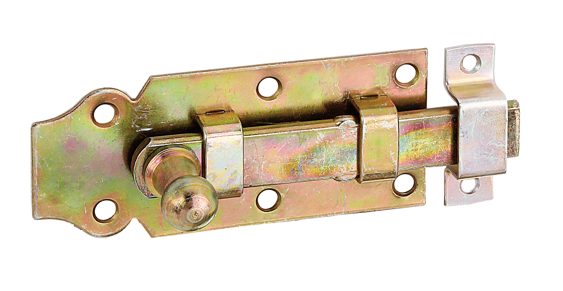 Türriegel,Knopf,gbvz,gerade,Schlaufe,100 100x44x16 mm, vz bunt chrom.