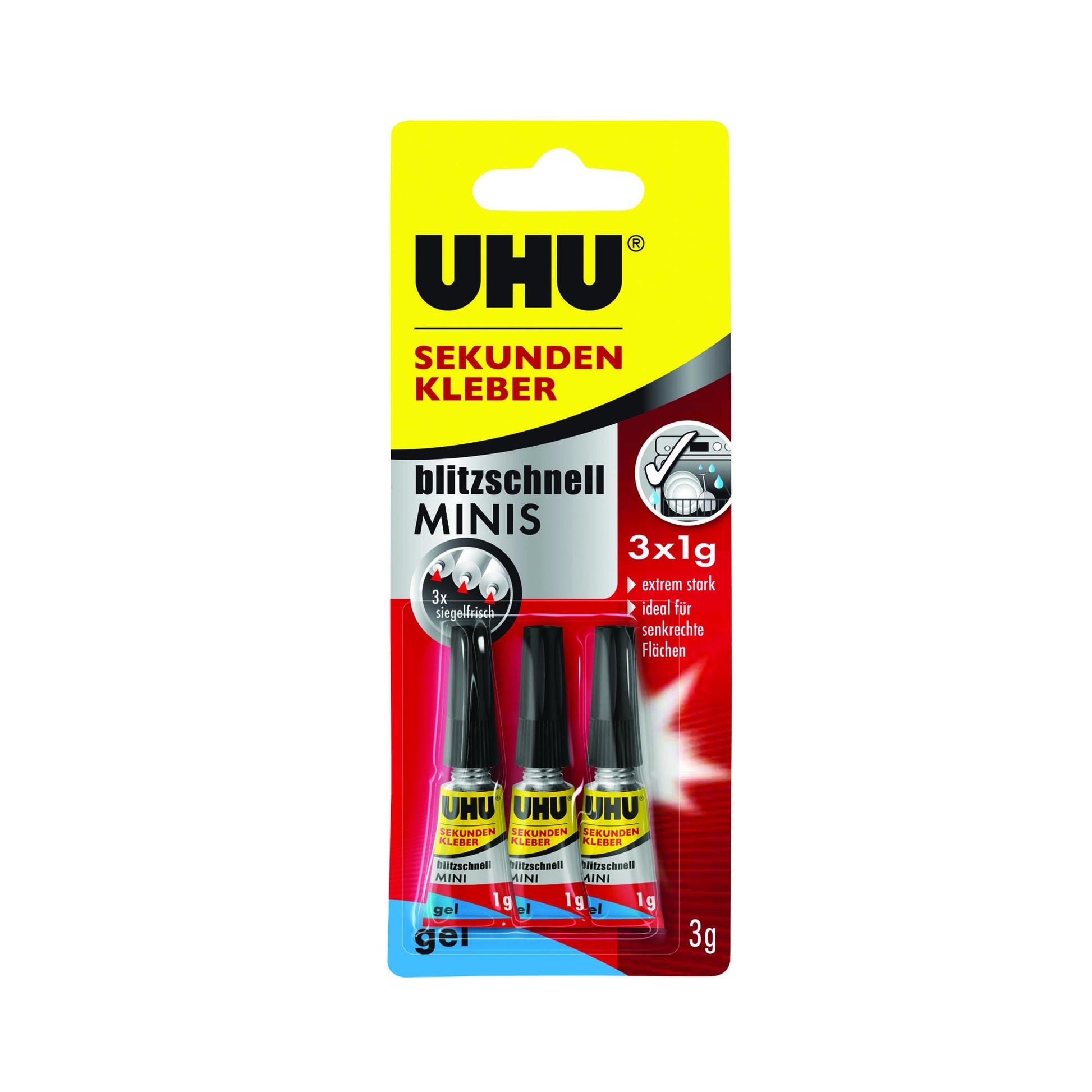 UHU Sekundenkleber blitzschnell, Gel, Minis 3x1g ohne Box 3g