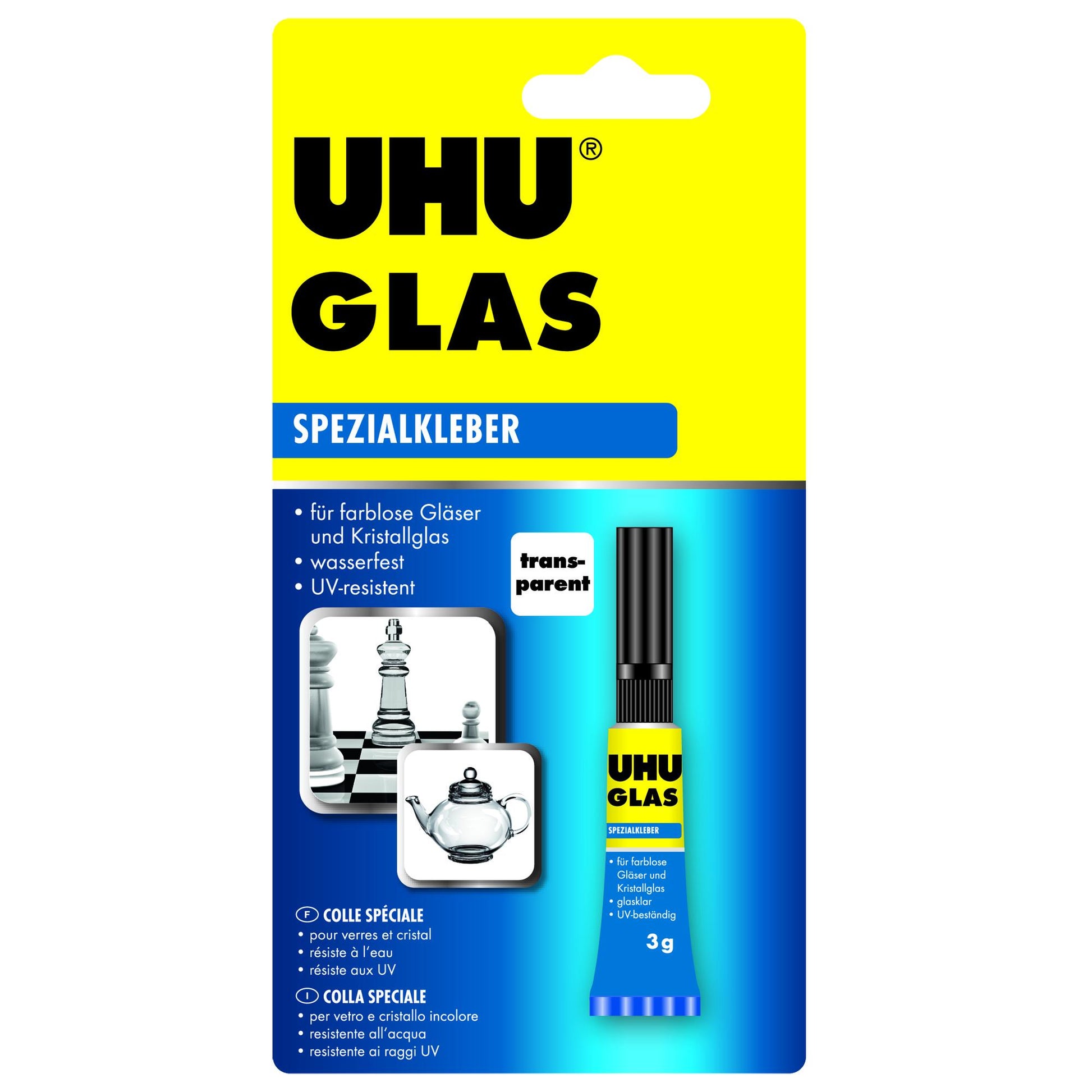 UHU glas reparaturkleber ist ein unter Tageslicht schnell aushärtender Spezialklebstoff für die Klebung von Glas und Kristallglas untereinander und auf Metall. Nach Aushärtung wasser- und spülmaschinenfest, UV-resistent und temperaturbeständig.